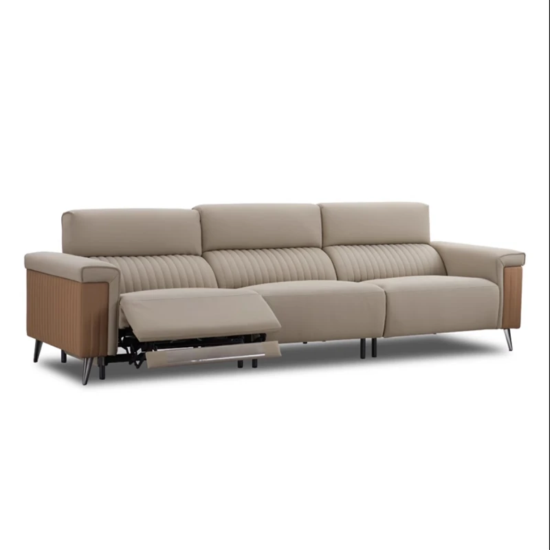 新中式スタイルのウコン材使用!モダンでシンプルなデザインのレザー大サイズコンビネーションソファ。リビングやモデルルームに最適な高品質の無垢材ソファで、優雅な空間を演出します。