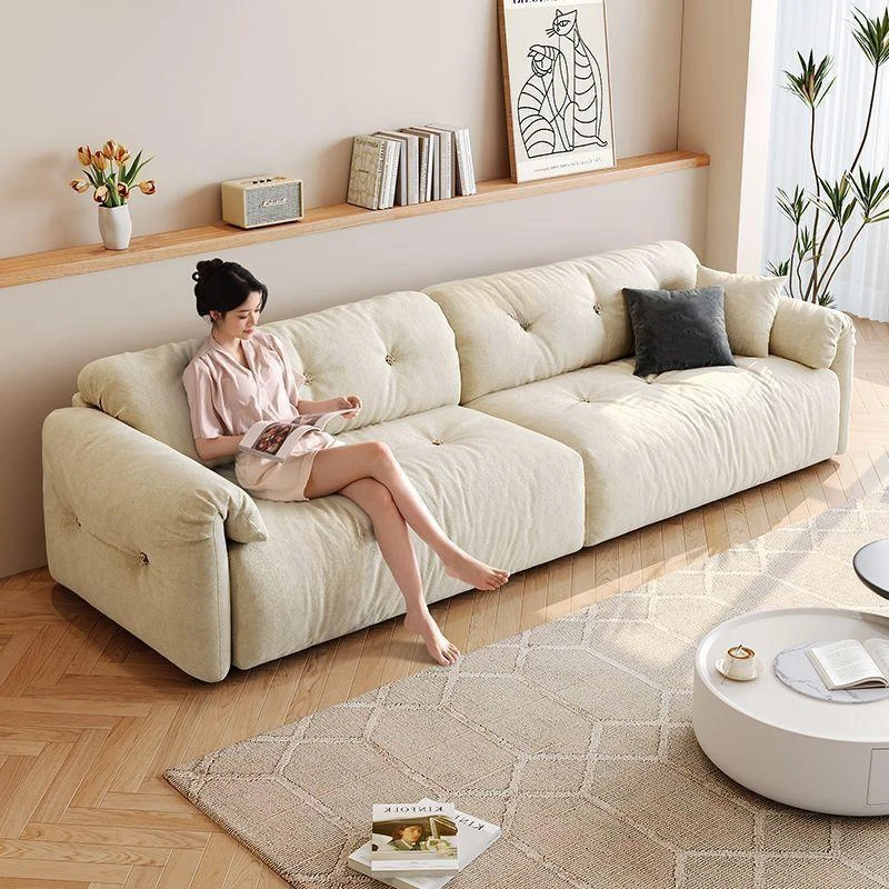 新中式スタイルの天然木とファブリック製ソファセット - モダンでシンプル、ラグジュアリーなイタリアンミニマリズムを取り入れた高級リビングルームに最適な別荘用ソファ。居心地の良さとスタイルを兼ね備えた一品。