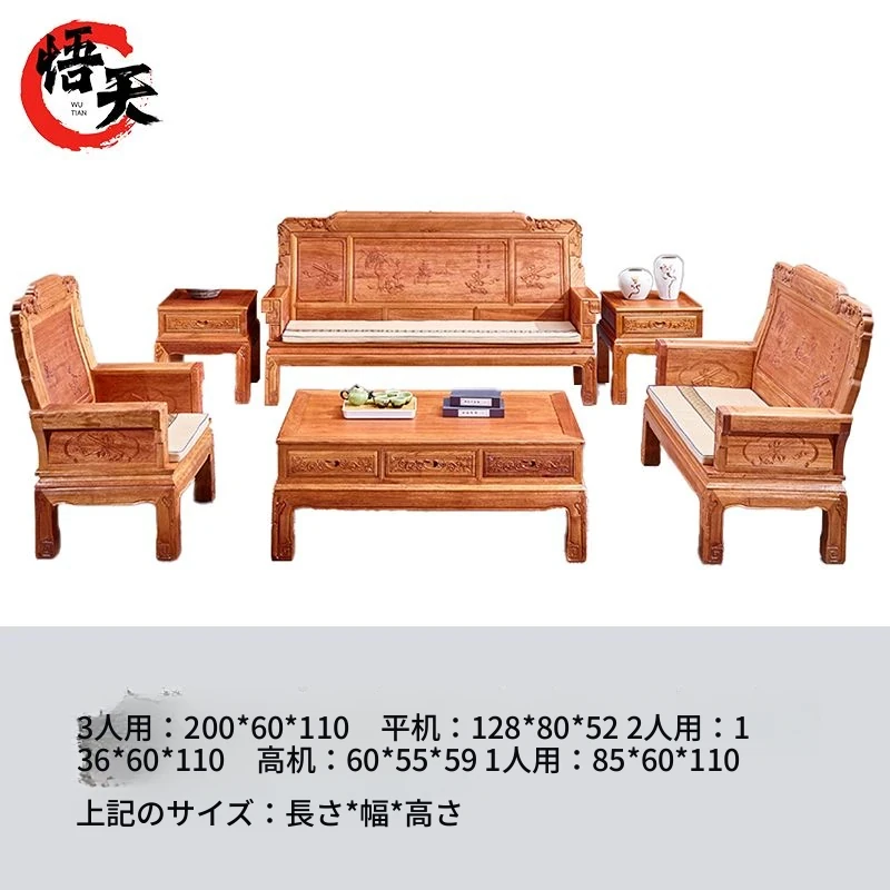 人気の金華梨木製全実木ソファー!中式アンティークスタイルで、明清時代を彷彿とさせる高級感。小型住宅にもピッタリな洗練されたリビングルームの組み合わせ家具です。