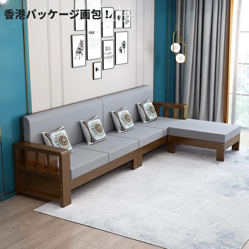 新中式全実木製ソファー - モダンでシンプルなデザイン、小型住宅にもぴったりな天然木のラグジュアリーソファーセット。快適なリビング空間を演出する、工場直送の高品質家具!