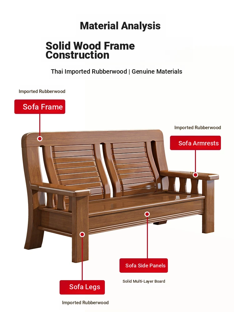 Traditional Chinese Solid Wood Sofa Set - Versatile Living Room Furniture for All Seasons, Featuring Natural Wood Lounge Chairs and a Stylish Sofa Combination. Perfect for Comfort and Elegance in Your Home!