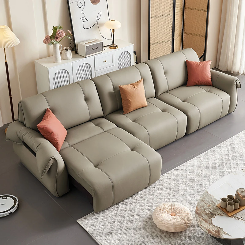 Luxurious All-Electric Multi-Functional Sofa Bed - Italian Minimalist Design, Premium Leather, Perfect for Living Rooms and Villas, Elevate Your Space with Style and Comfort