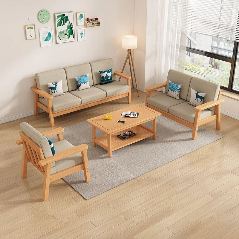 Stylish Nordic Solid Wood Sofa Set with Beech Wood, Modern Minimalist Design for Small Spaces - Includes Sofa and Coffee Table, Easy to Disassemble and Clean, Perfect for Contemporary Living Rooms!