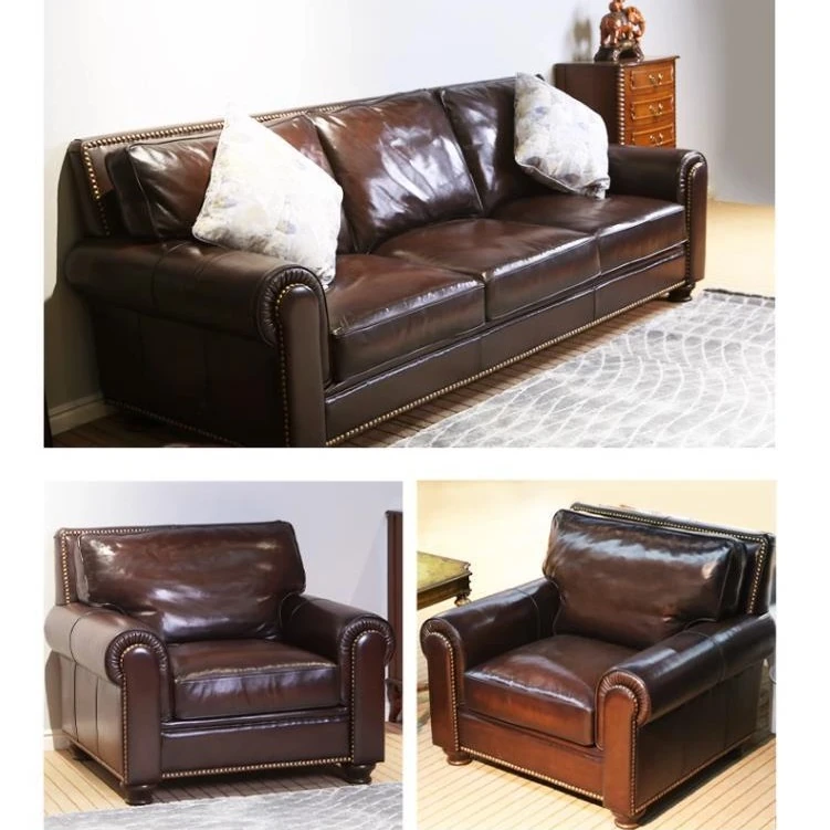 American Light Luxury Small Apartment Living Room Genuine Leather Sofa - European Minimalist Designer Top-Grain Waxed Leather Couch for Modern Comfort and Style