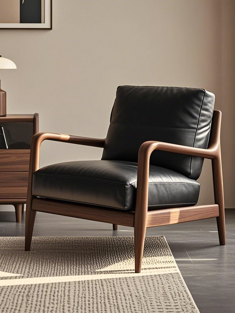 高級デザインの黒胡桃無垢材ソファチェア - モダンでシンプルな家用リラックスチェア。洗練されたスタイルで、居心地の良い空間を演出します!
