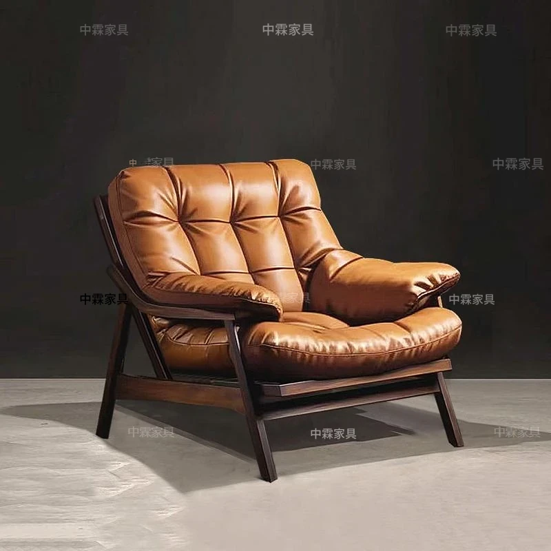 新中式デザインのウォールナット製ソファチェア - モダンでシンプル、軽やかなラグジュアリー。リビングルームに最適な実木製のリラックスチェア、イタリアンスタイルの洗練されたソファ。おしゃれな空間を演出します!