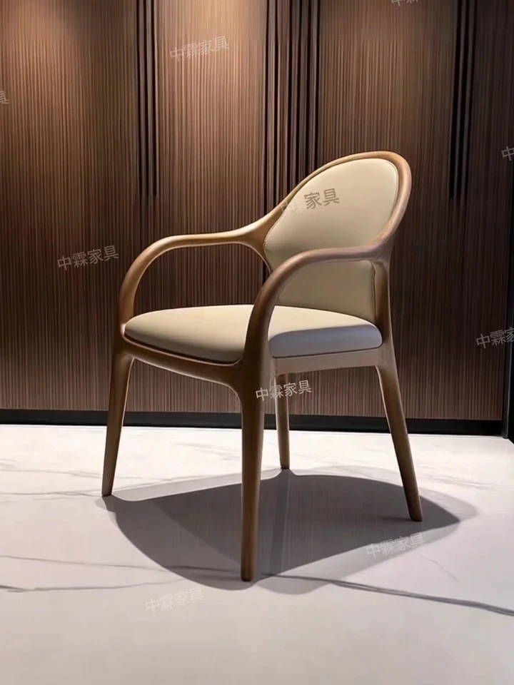 新中式デザインの無垢材ダイニングチェア|現代的でシンプルなリラックス用ティーチェア|デザイナーが手掛けたイタリアンミニマルスタイルの書斎椅子|宋氏美学のエッセンスを取り入れた上質な一品