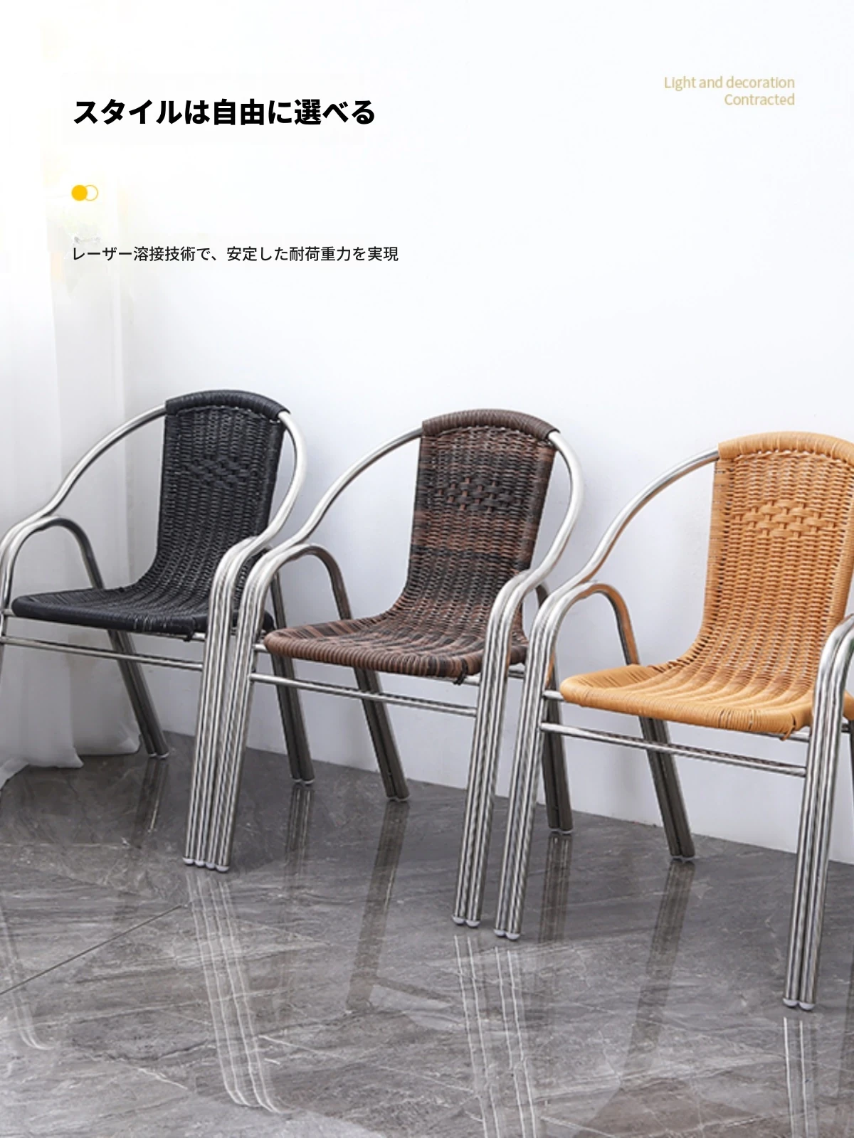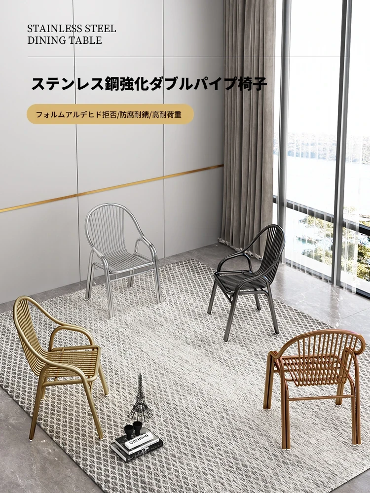 ステンレス製アウトドアチェア 背もたれ付きリラックスチェア 家庭用ラタン椅子 シングルシート 大人用ダイニングチェア おしゃれで耐久性抜群!快適な座り心地を実現しました。