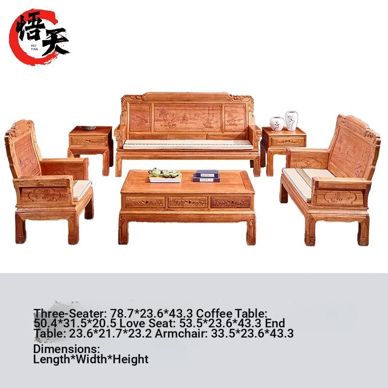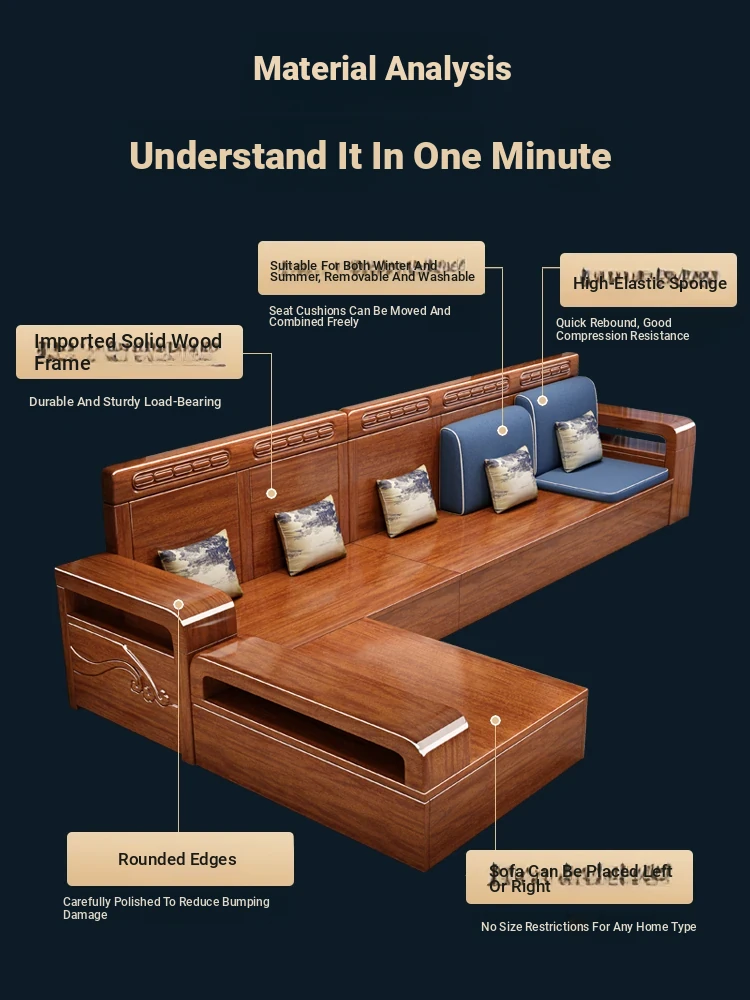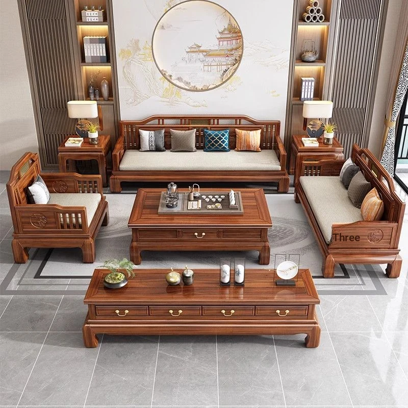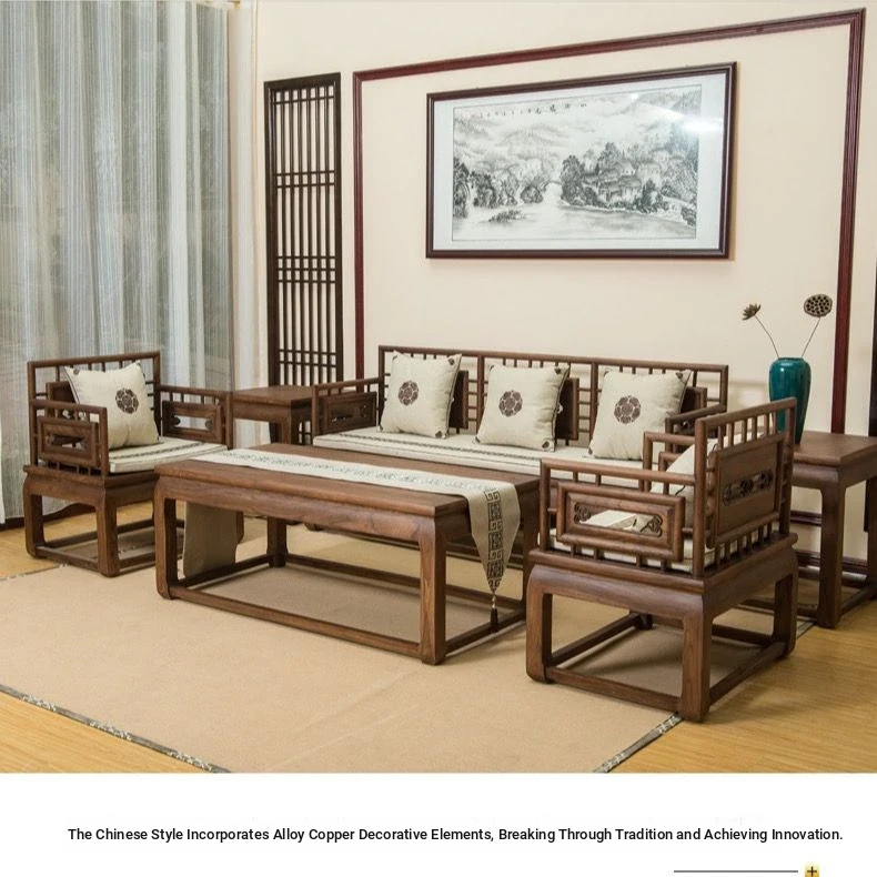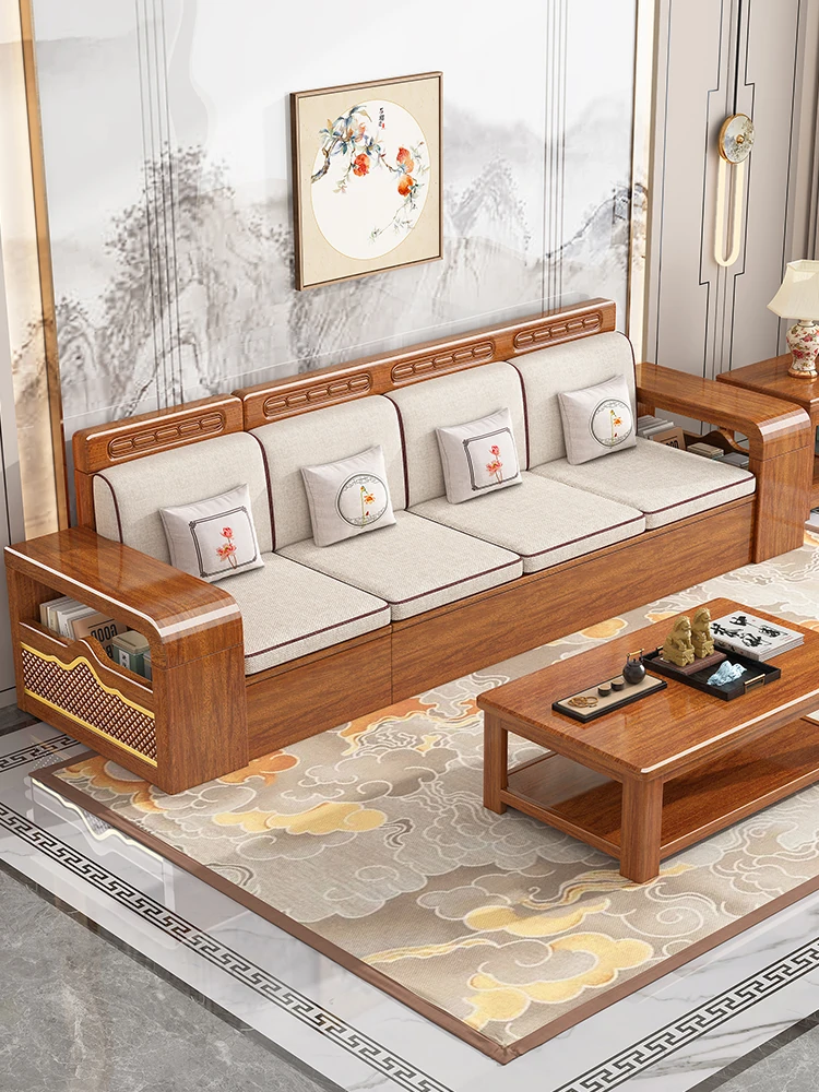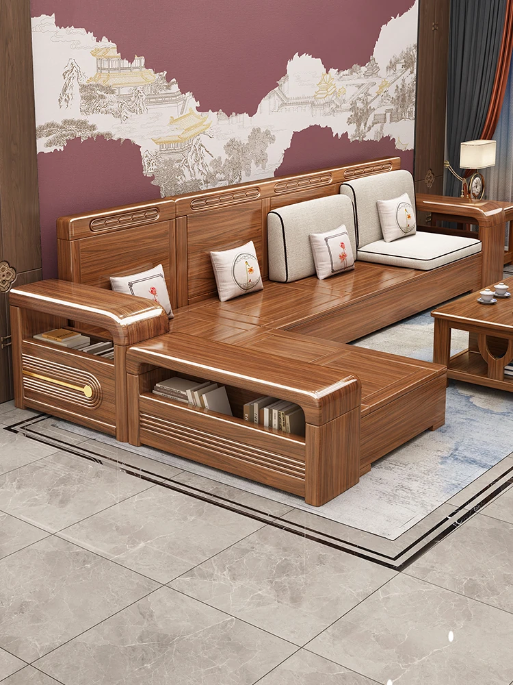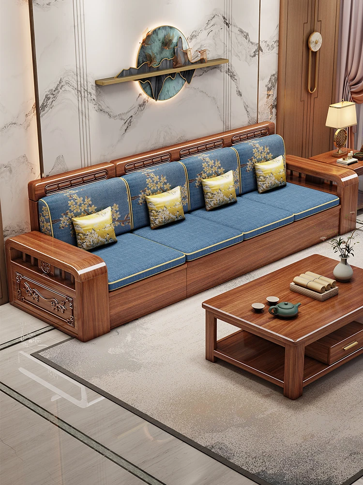 2025 New Walnut Wood Chinese Style Solid Wood Sofa Set - Versatile Storage Solution for Small Living Rooms, Perfect for Year-Round Use