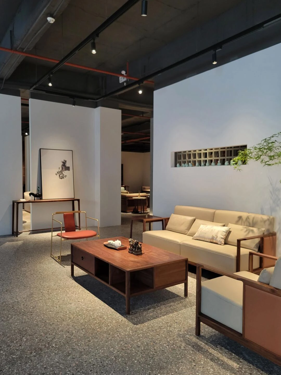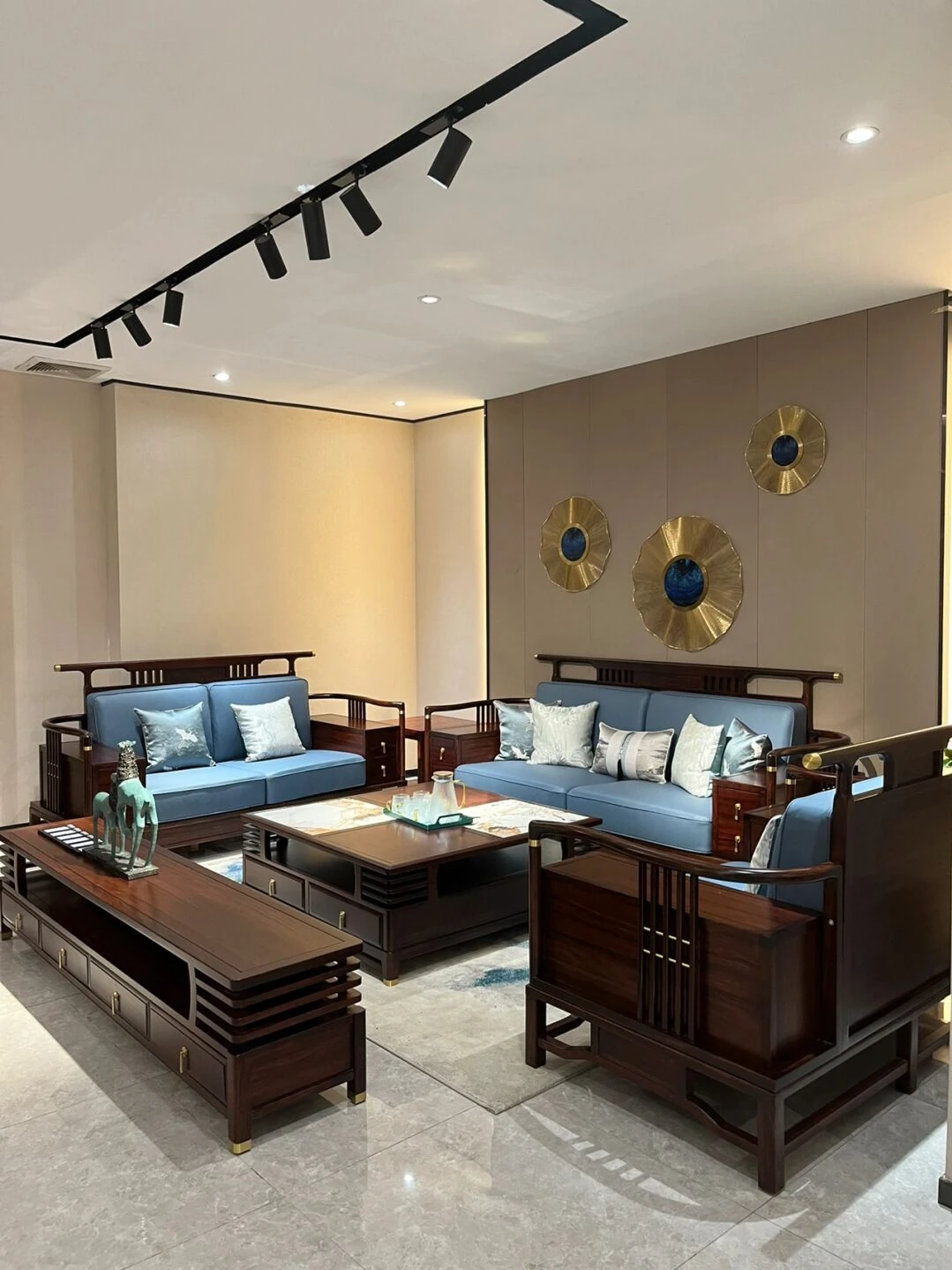 Modern Chinese Style Sofa Set in Wutong Wood - Elegant and Minimalist Leather Furniture for Spacious Living Rooms and Showrooms