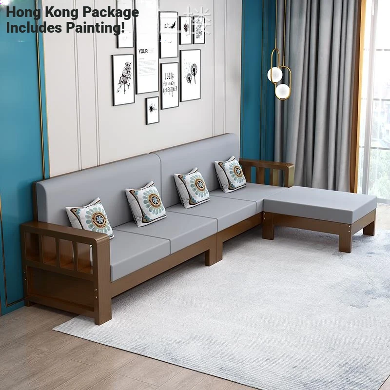 Stylish Modern Solid Wood Sofa Set for Small Living Rooms - Corner Design for Ultimate Comfort and Elegance
