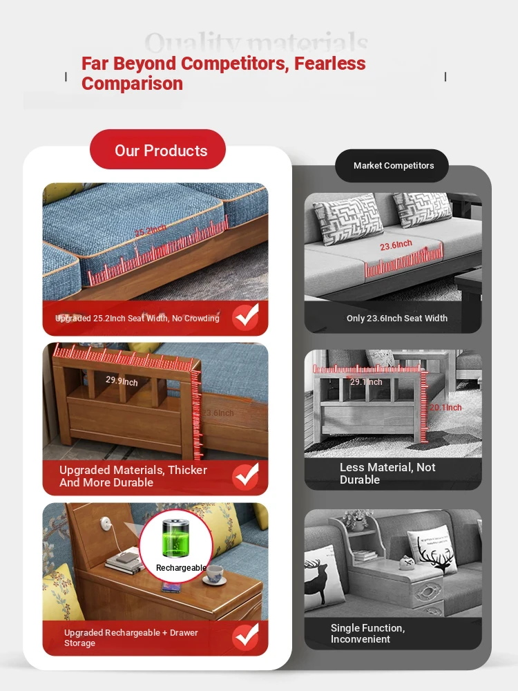 Modern Solid Wood Sofa with Camphor Wood - All-Season Convertible Design for Living Room, Featuring Storage Space and Rustic Fabric Touch