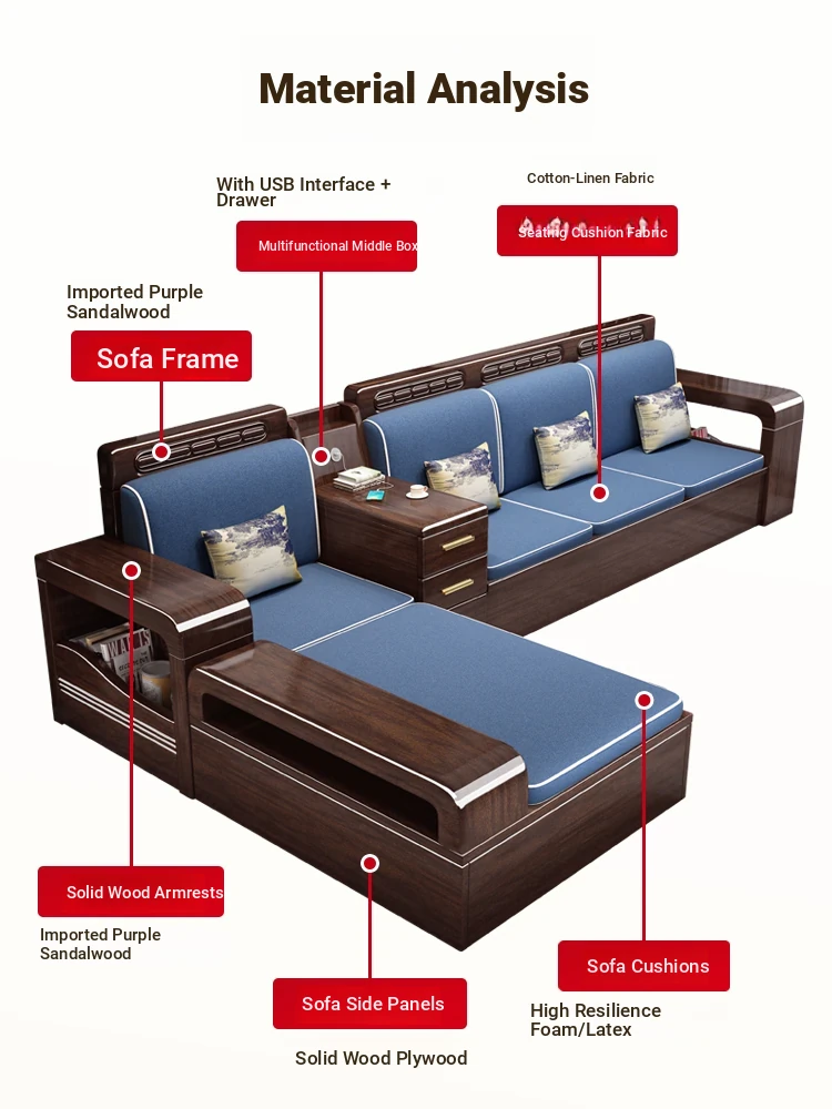 2025 New Arrivals: Solid Purple Sandalwood Sofa for Living Room - Modern Chinese Style, Space-Saving, Multi-Functional Design with Storage for Small Apartments