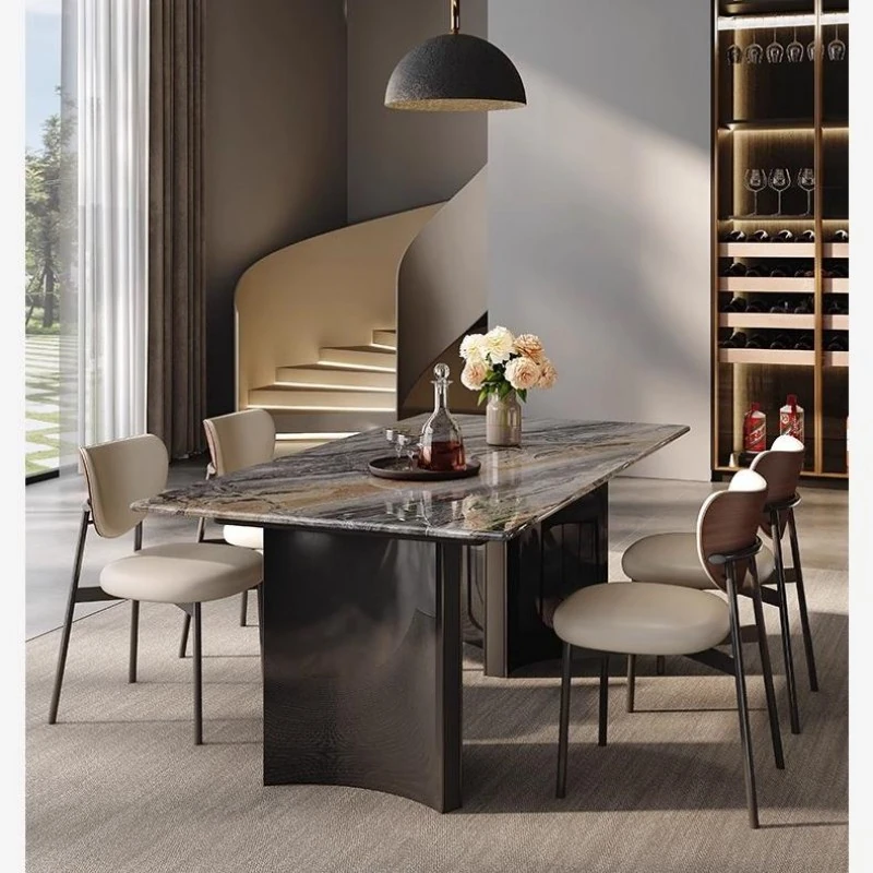 Aisenai Imported Venice Brown Rectangular Luxury Stone Dining Table - Italian Light Luxury High-End Natural Marble Modern Design