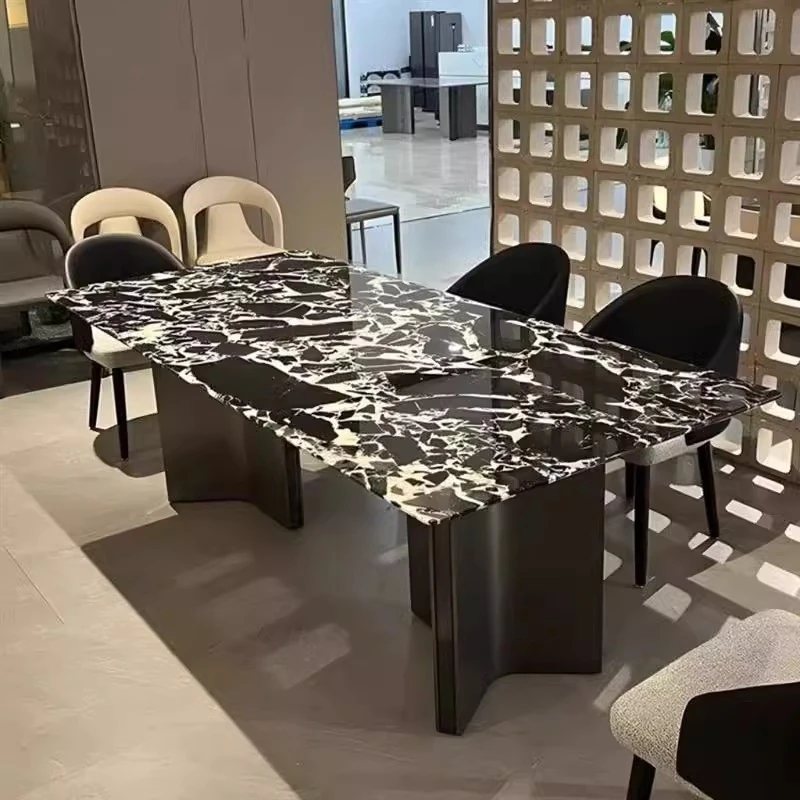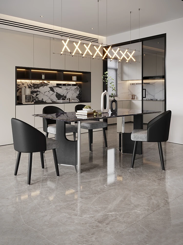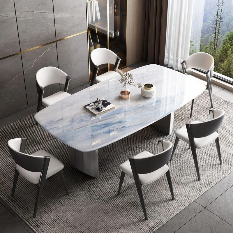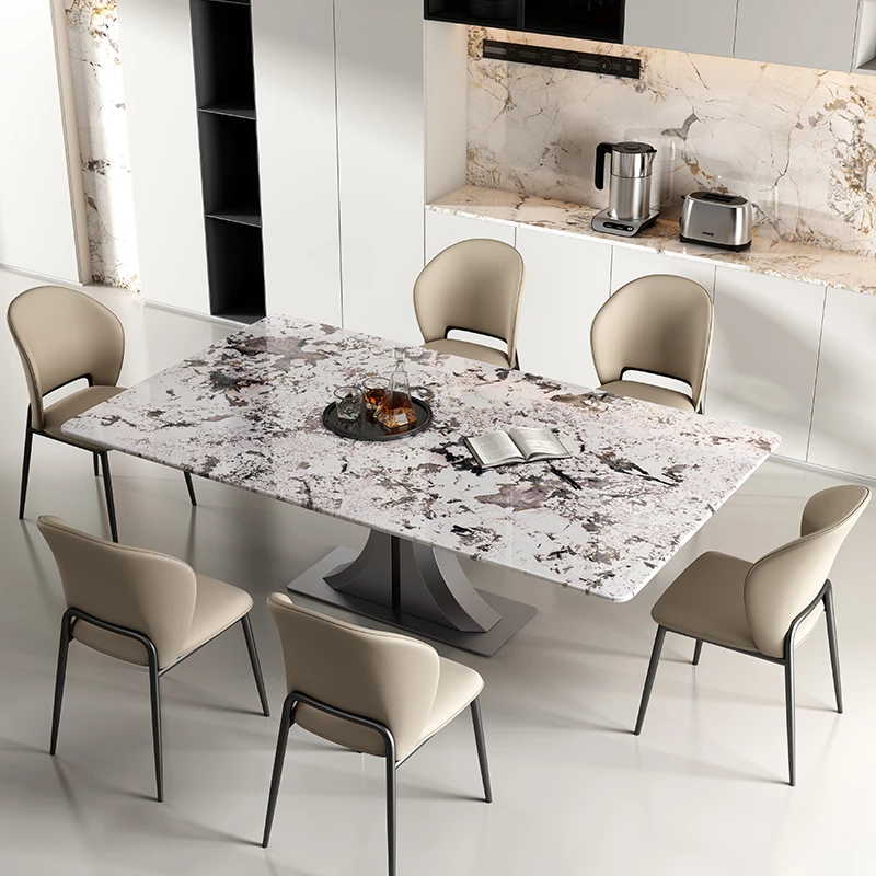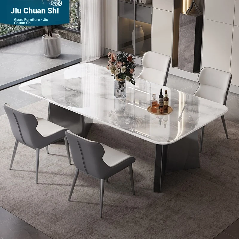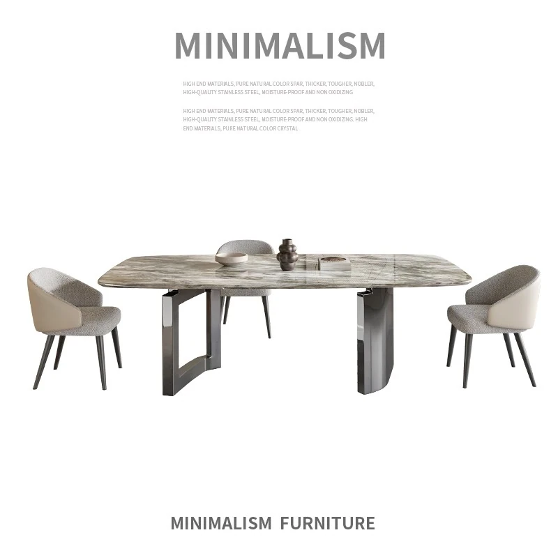 Premium Natural Microcrystal Stone Rectangular Dining Table Set - Modern Minimalist Luxury for Home Living Room with Elegant Marble Chairs