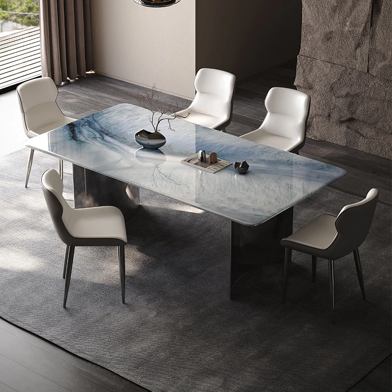 Yunxin Blue Jade Luxury Stone Dining Table - High-End Fendi Style Long Table for Minimalist Villa, Elegant Marble Dining Room Table