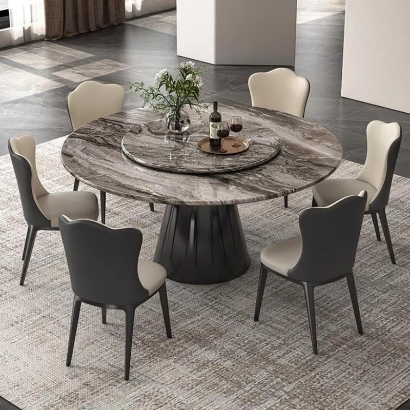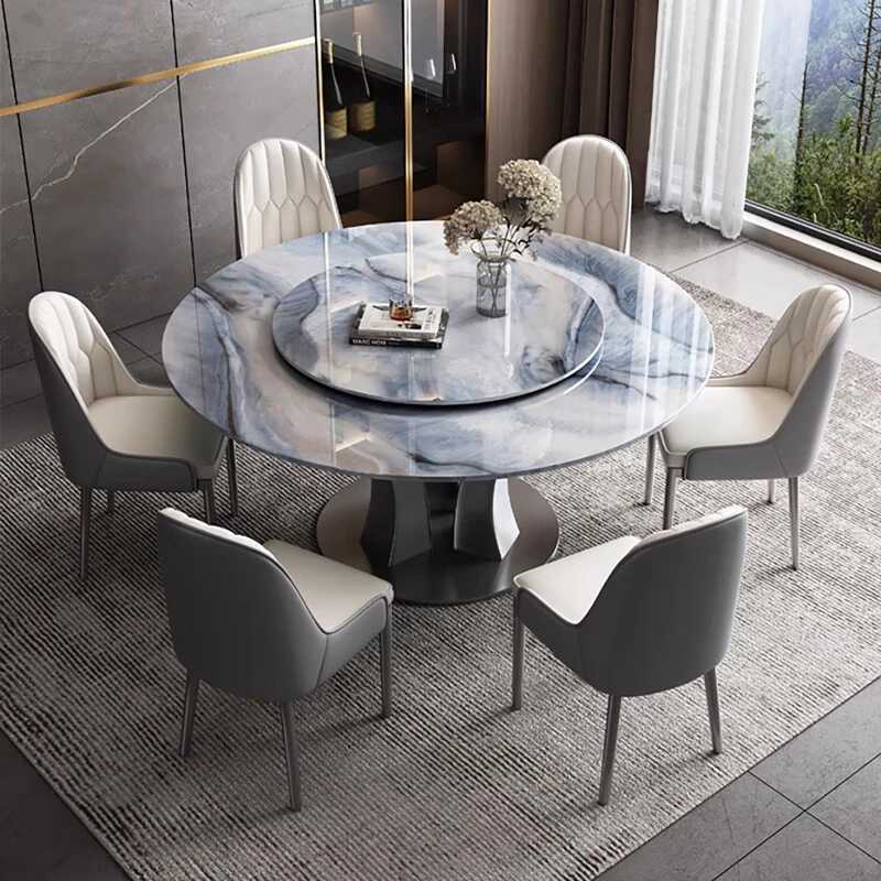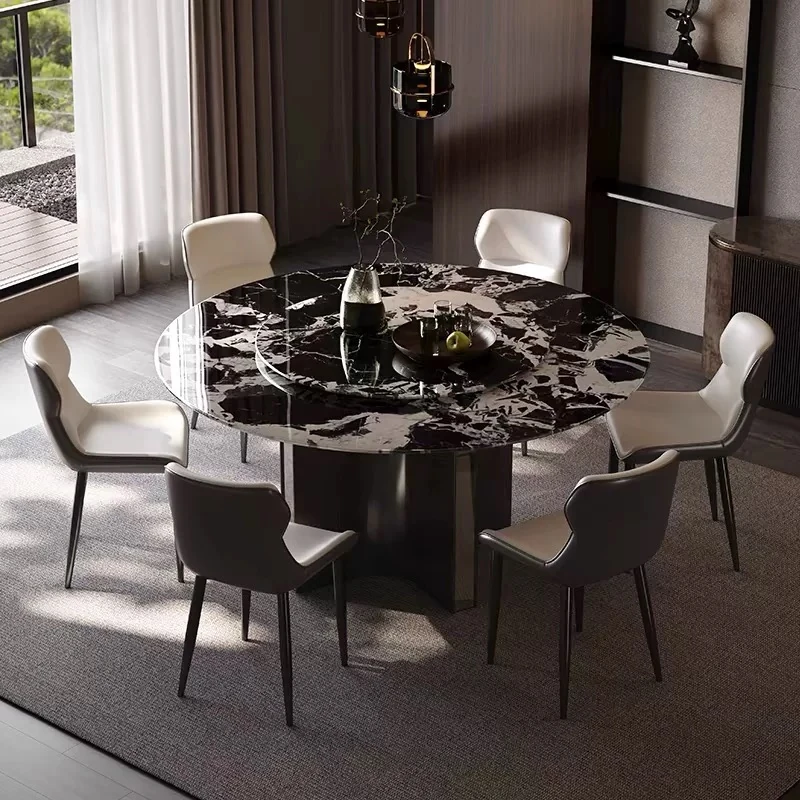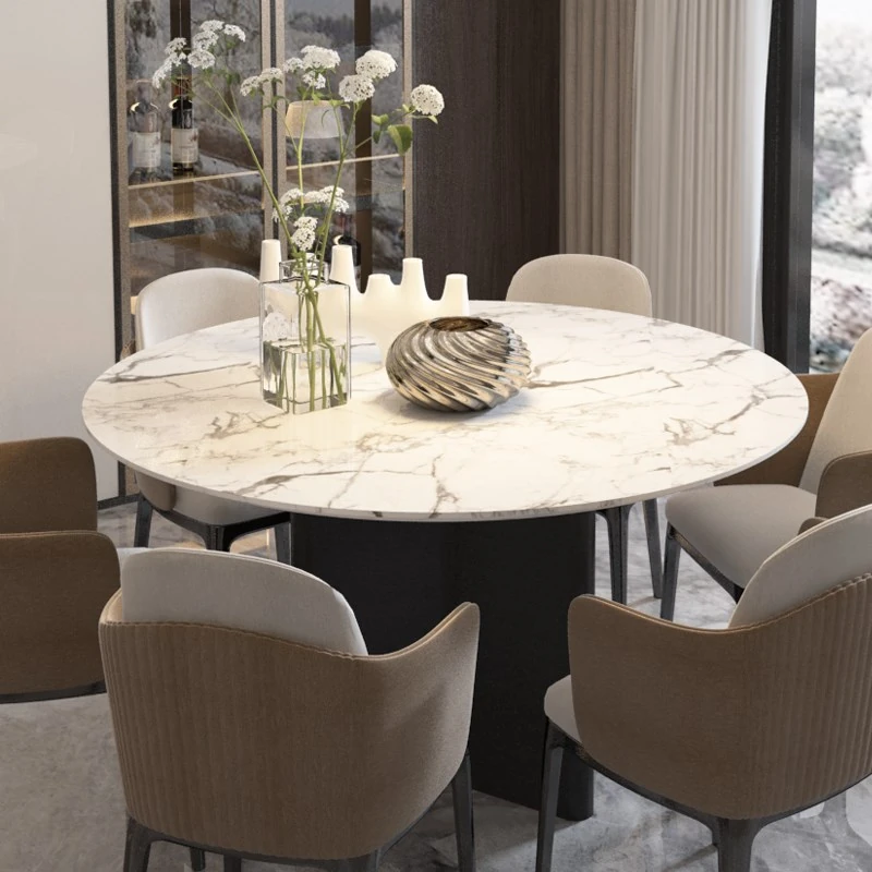 Yunxin Bulgari Natural Marble Round Table - Designer Minimalist Luxury Stone Dining Set for Spacious Living Areas