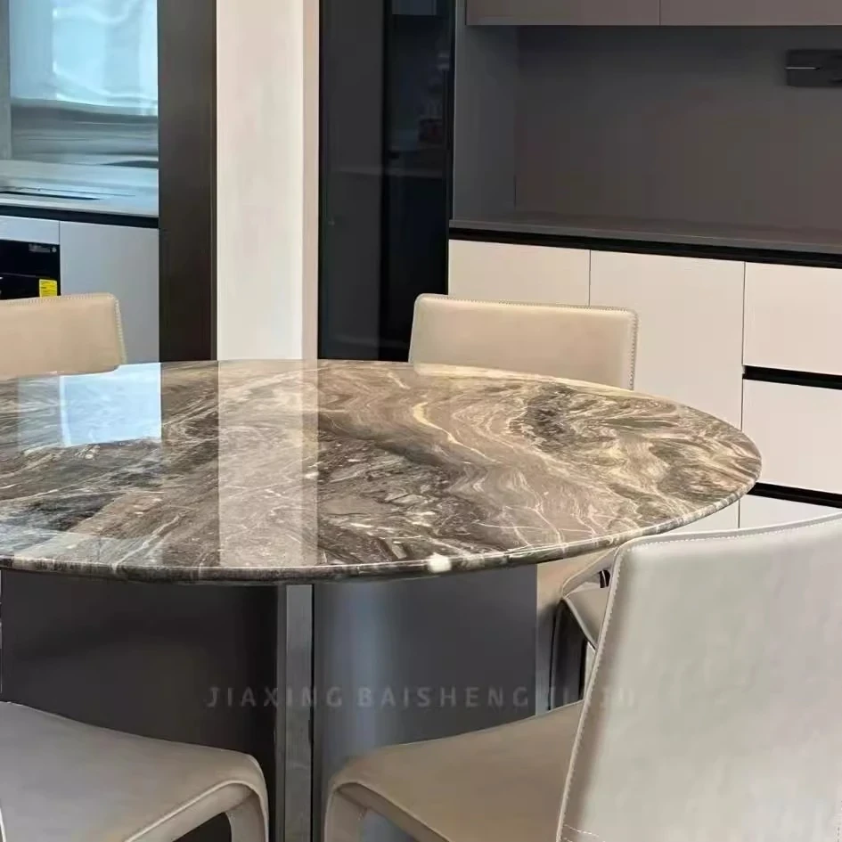 Yunxin Italian Imported Luxury Marble Dining Table - Venetian Brown Round Table for Modern Villas - Elegant Round Dining Table with Sophisticated Design