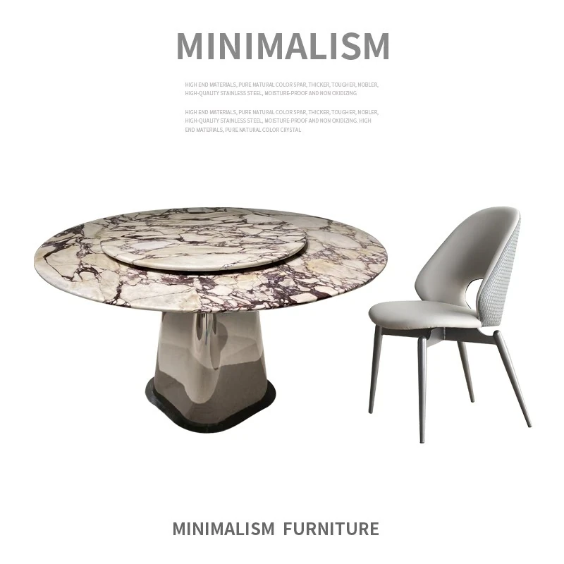 Modern Italian Luxury Dining Table and Chair Set - Minimalist Marble Round Table with Lazy Susan for Home Use, Perfect for Small Spaces