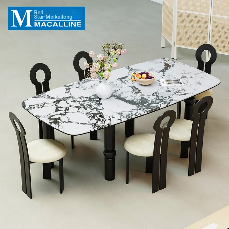 Kaimiao Italian Style Luxury Marble Dining Table and Chair Set - Modern Minimalist Ultra-Crystal Stone Design for Small Homes and Living Rooms