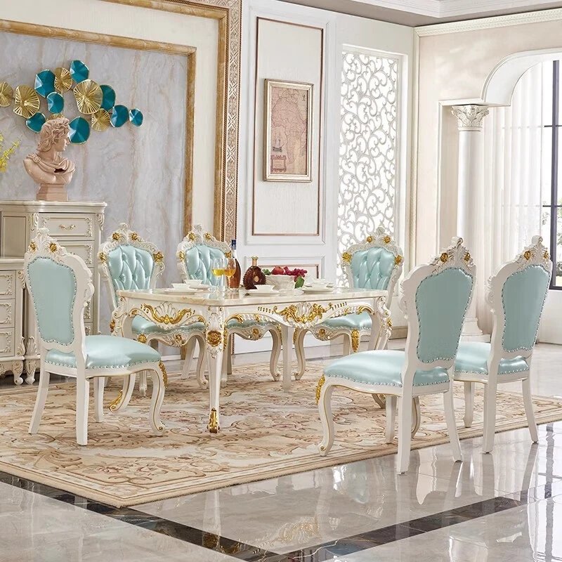 Oushangje Vintage French Marble Dining Table and Chair Set - Creamy Aesthetic Home Dining Table, Mid-Century Inspired Bulgari Style