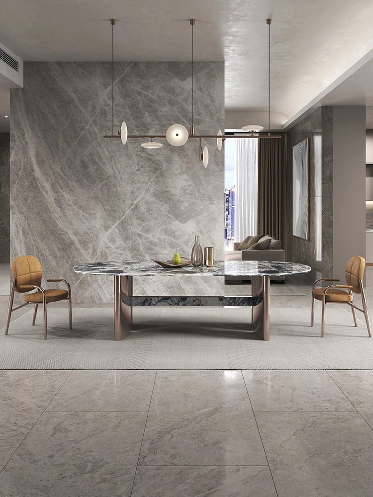 Yunxin Venice Brown Luxury Stone Dining Table - Milo Tiling Natural Marble High-End Designer Dining Table for Premium Living Spaces