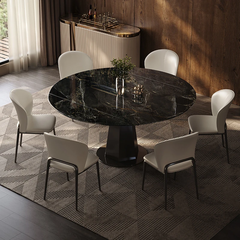 Yufei Italian Luxury Ultra-Crystal Stone Round Dining Table - Natural Marble Villa Style Simple Modern Home Dining Table