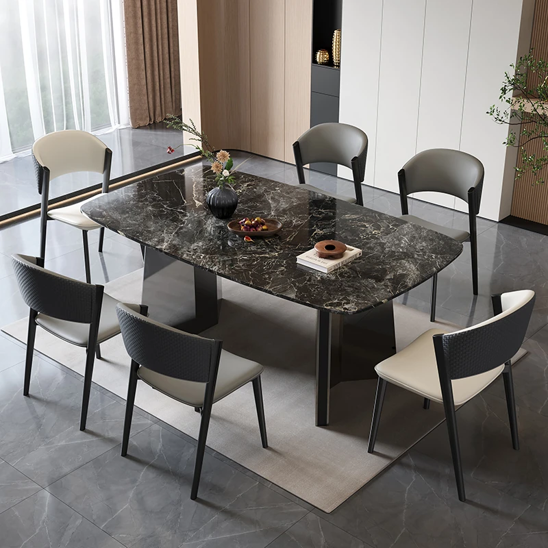 Yunxin Natural Pandora Luxury Stone Dining Table and Chair Set - Modern Minimalist High-End Rectangular Dining Table for Elegant Dining Rooms