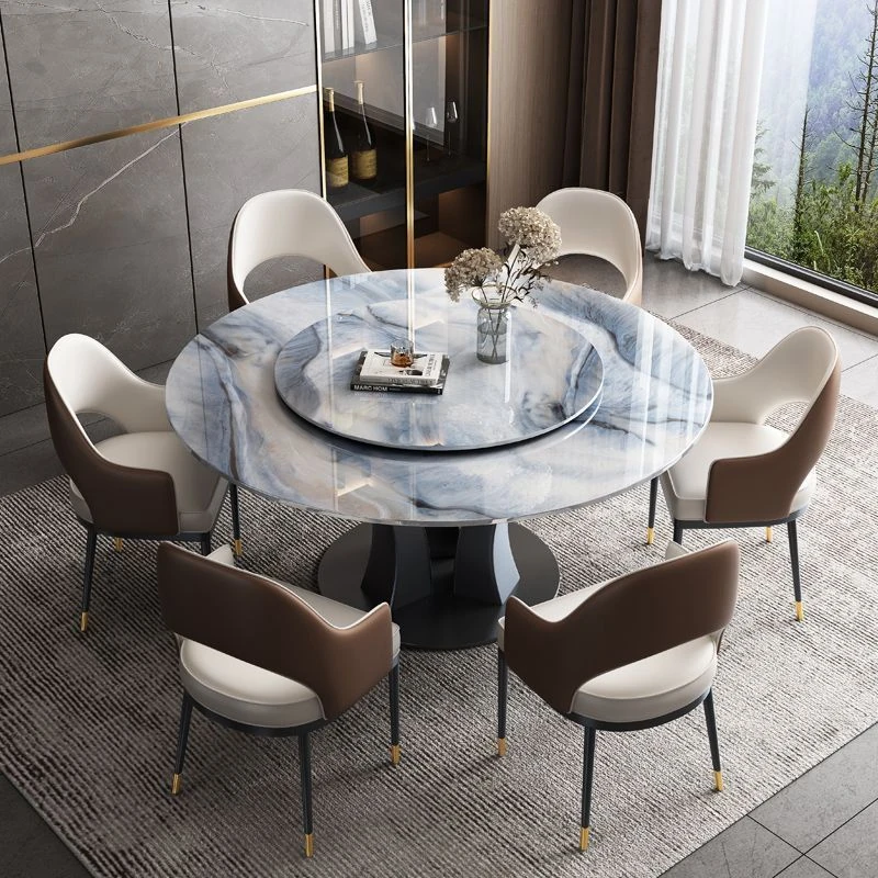 WenNuo Italian Luxury Ultra-Crystal Stone Dining Table - Elegant Round Marble Table with Rotating Tray for Home and Restaurant Use