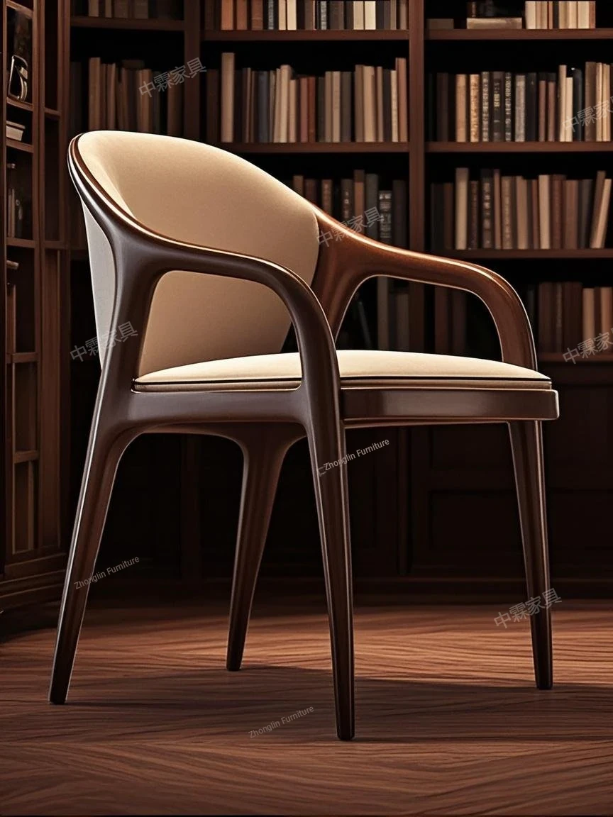 North American Black Walnut Solid Wood Tea Chair with Backrest - Designer Leather Dining Chair - Modern Light Luxury Leisure Sofa Chair