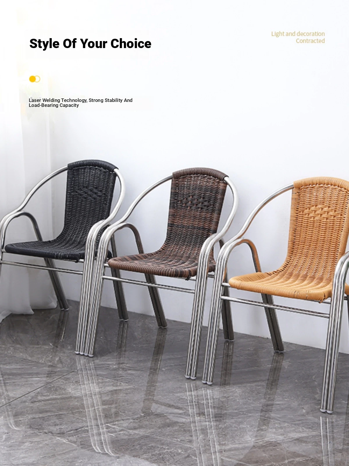 Stylish Stainless Steel Outdoor Chair with Rattan Backrest – Perfect for Relaxation and Dining at Home – Comfortable Single Seat for Adults