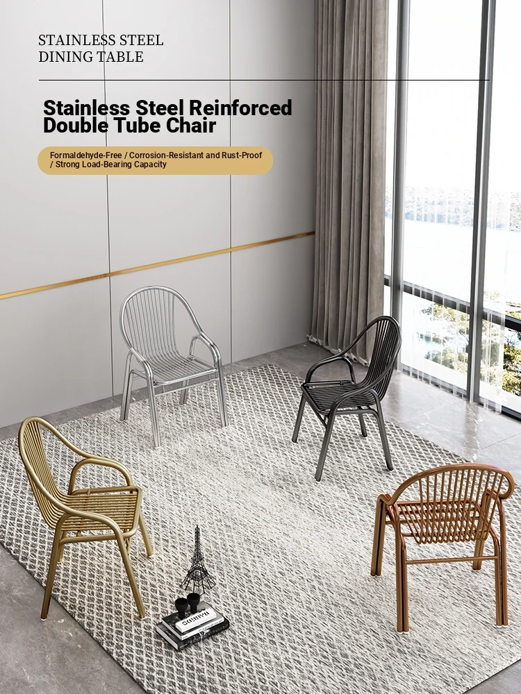 Stainless Steel Dining Chair with Armrests and Backrest - Outdoor Metal Balcony Chair for Home Use, Fully Assembled Single Seat Relaxation Furniture