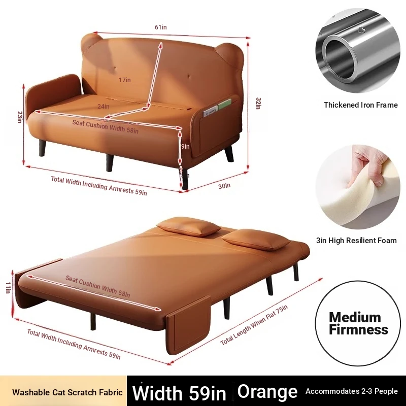 2024 Multi-Functional Folding Sofa Bed – Stylish and Space-Saving for Small Apartments, Perfect for Living Rooms, Trendy Temporary Bed for Guests or Single Use