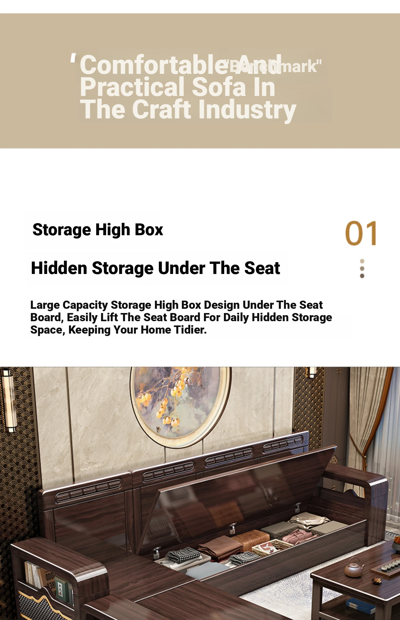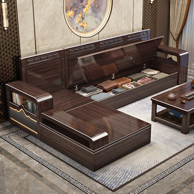 2025 New Arrivals: Solid Purple Sandalwood Sofa for Living Room - Modern Chinese Style, Space-Saving, Multi-Functional Design with Storage for Small Apartments