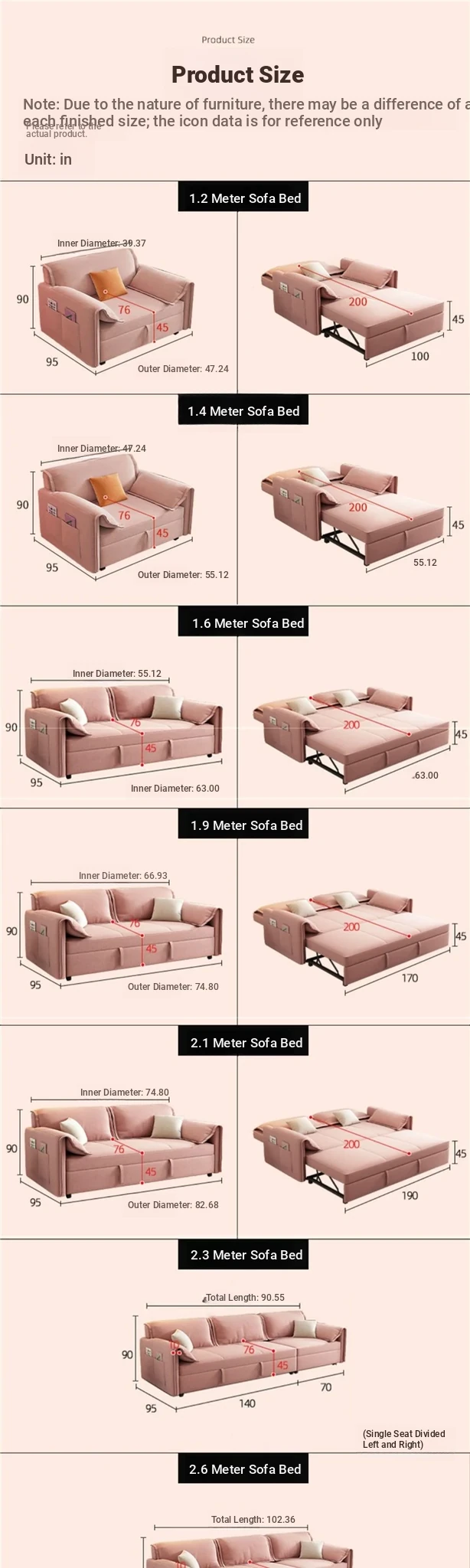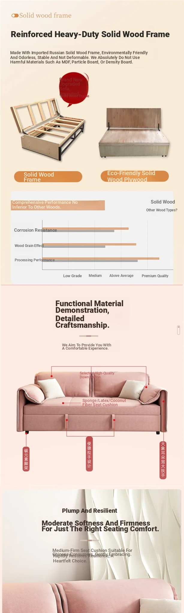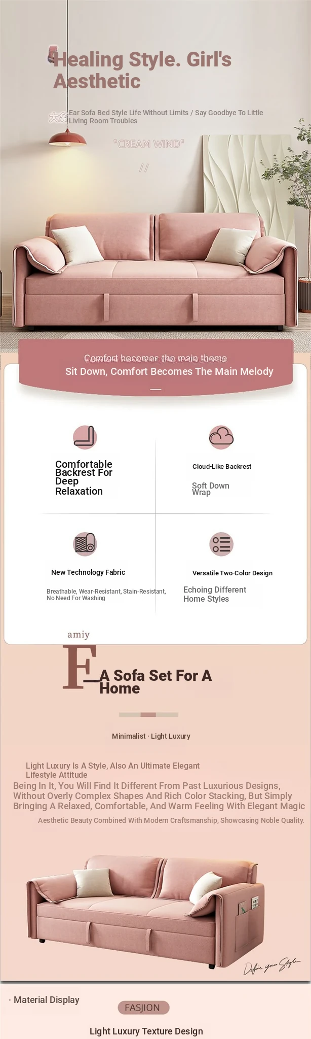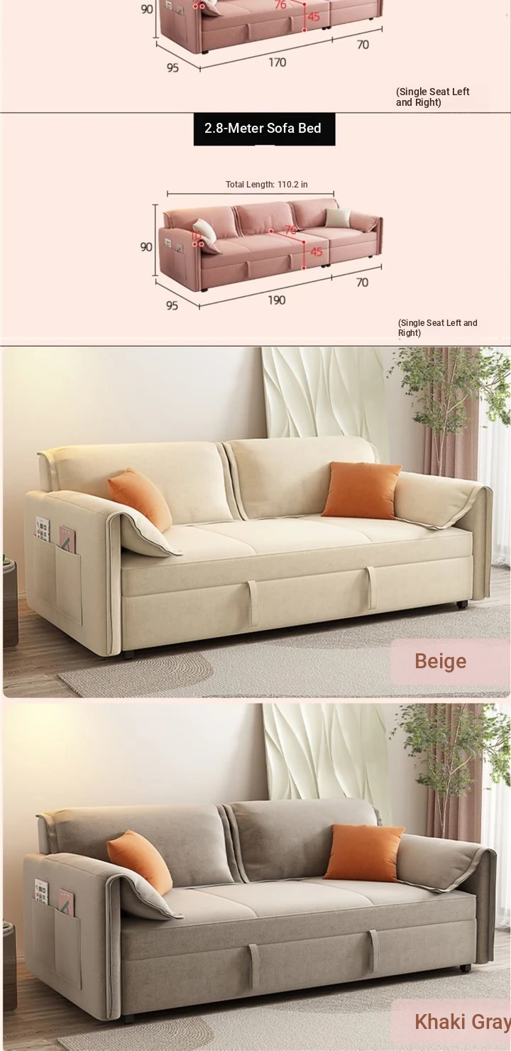 2M Sofa Bed for Four - Versatile Modern Minimalist Design for Small Living Rooms, Foldable All-in-One Solution