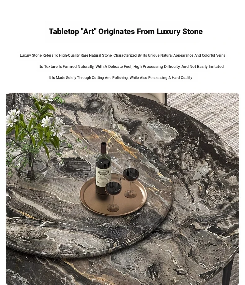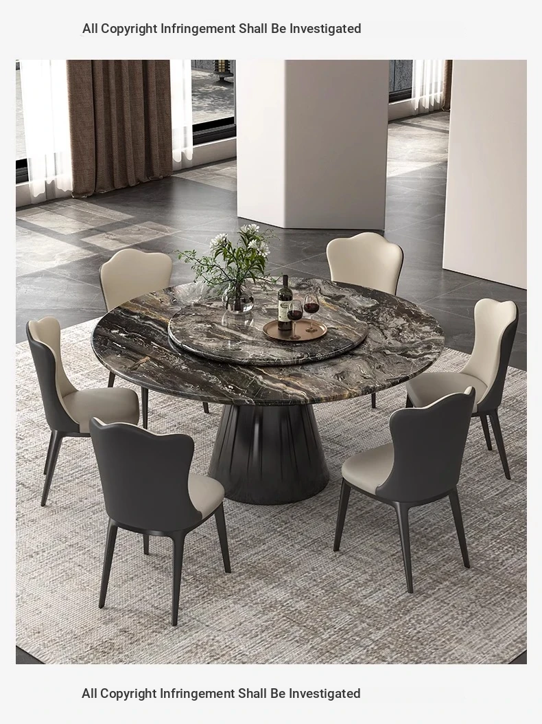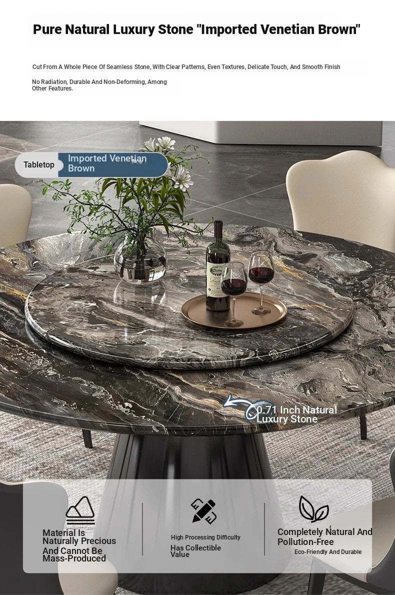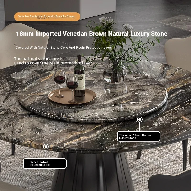 Aisen Imported Venice Brown Luxury Stone Dining Table - Natural Marble Round Table - Italian Light Luxury High-End Design