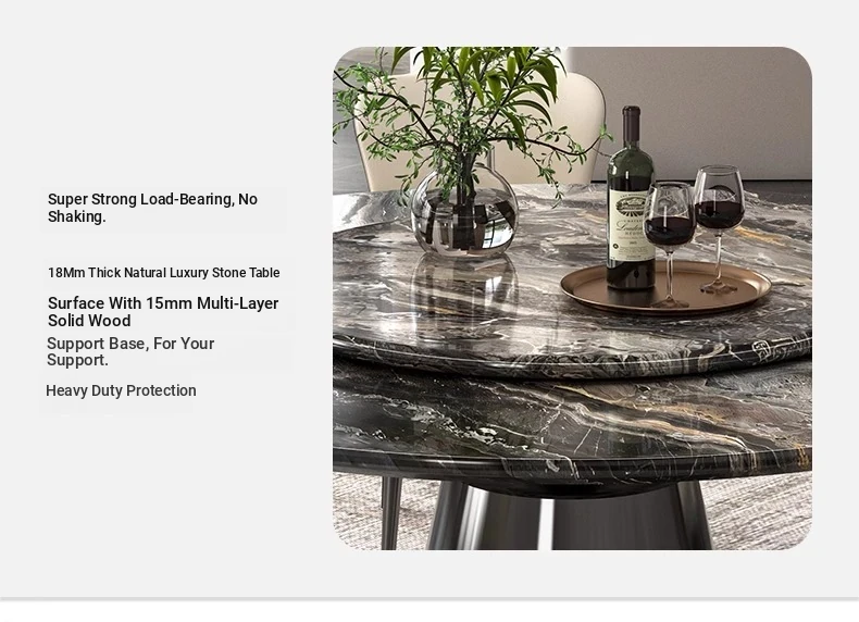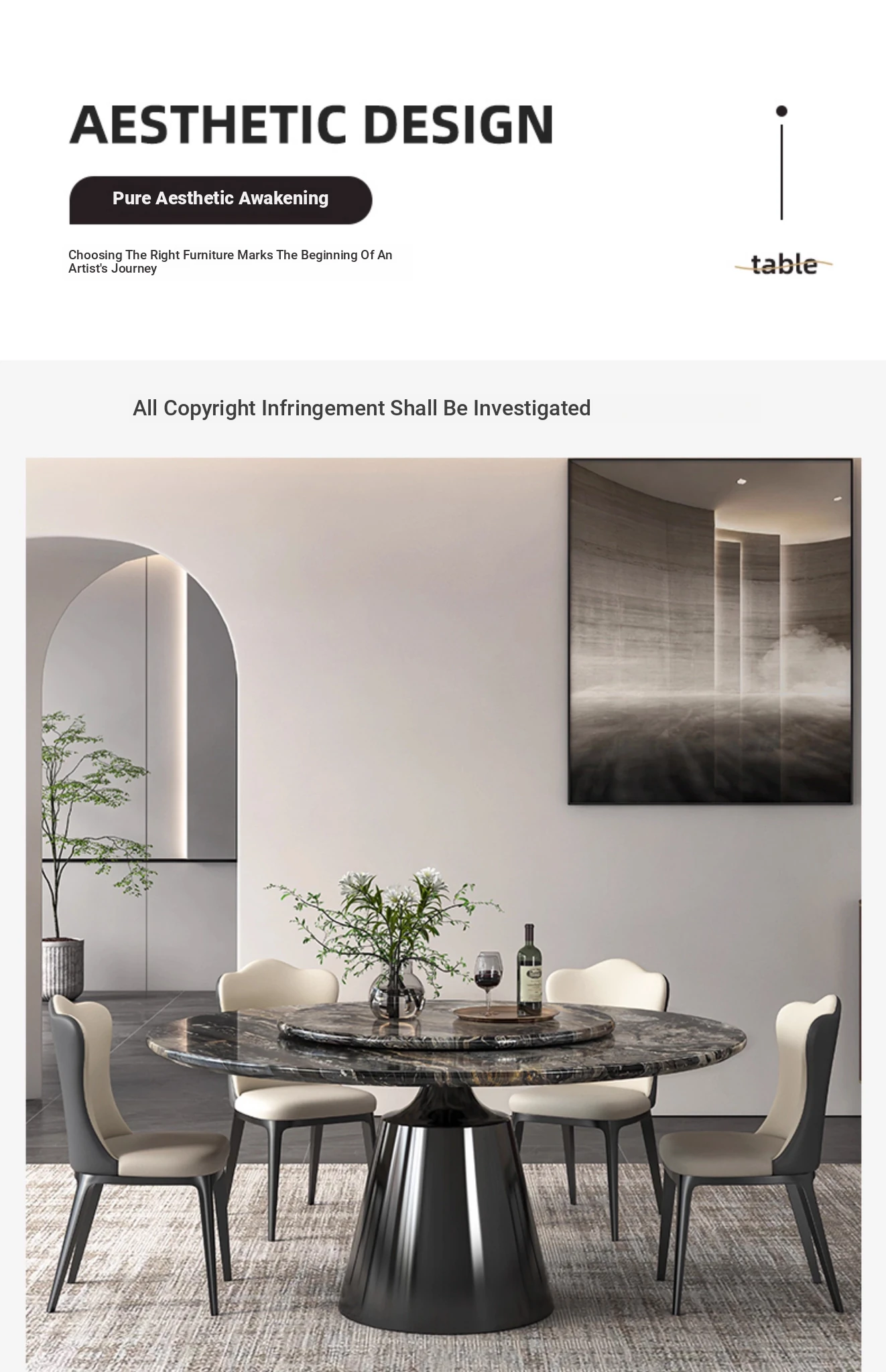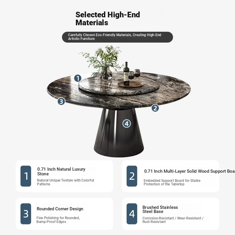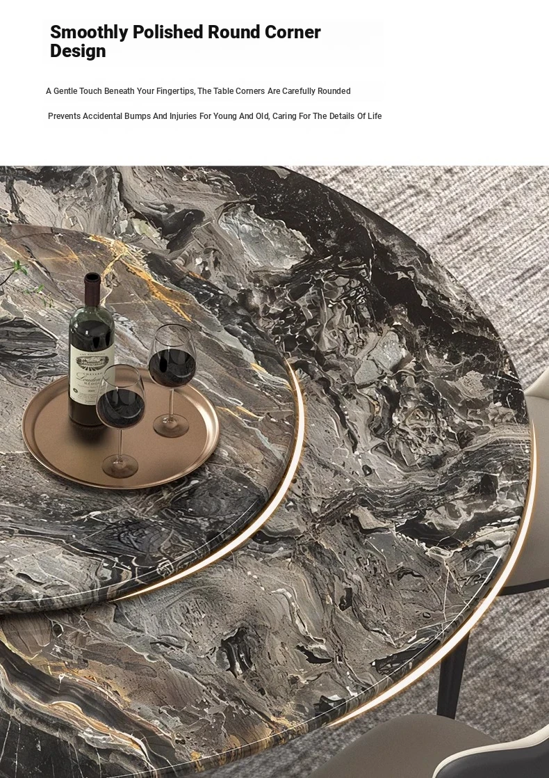 Aisen Imported Venice Brown Luxury Stone Dining Table - Natural Marble Round Table - Italian Light Luxury High-End Design