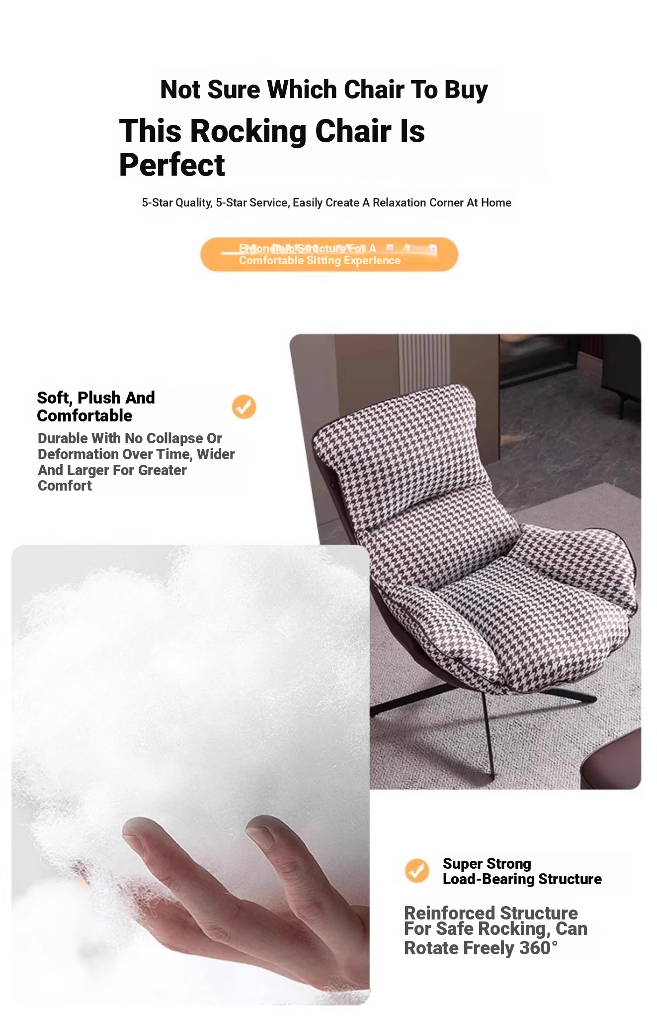 Orange + black and white houndstooth (single chair)(Orange + black and white houndstooth (single chair))