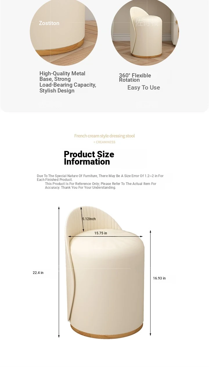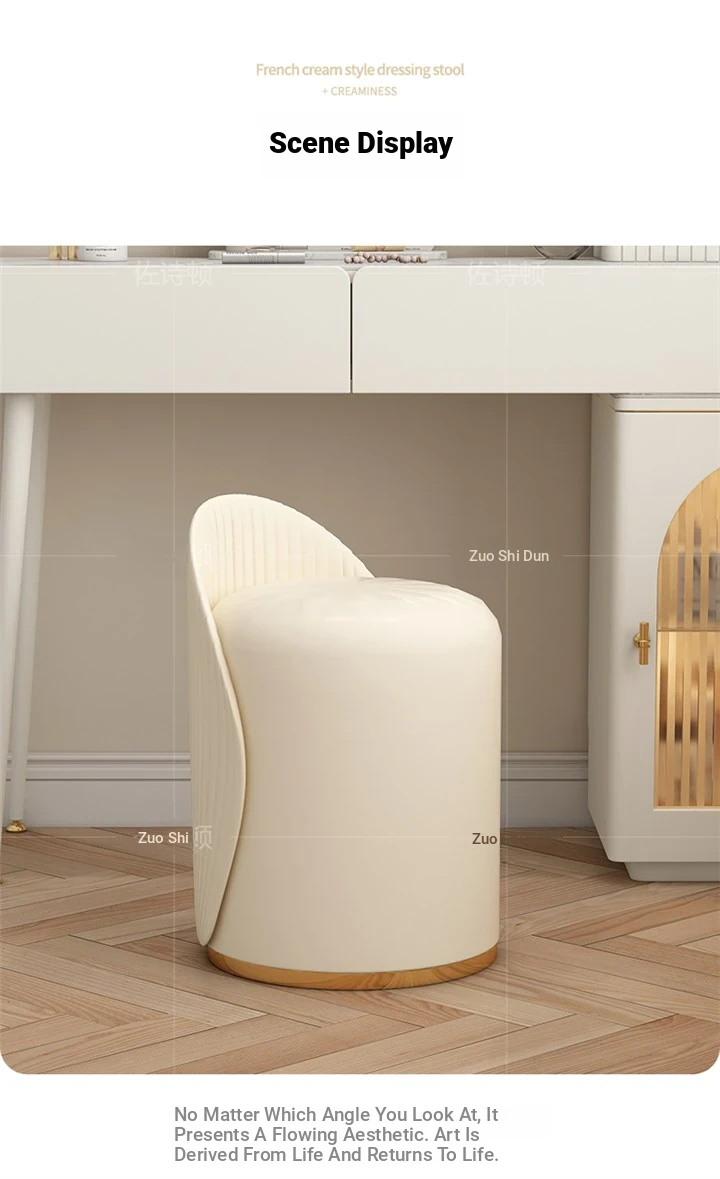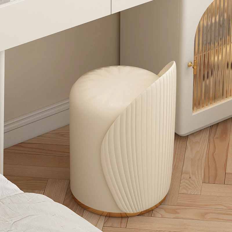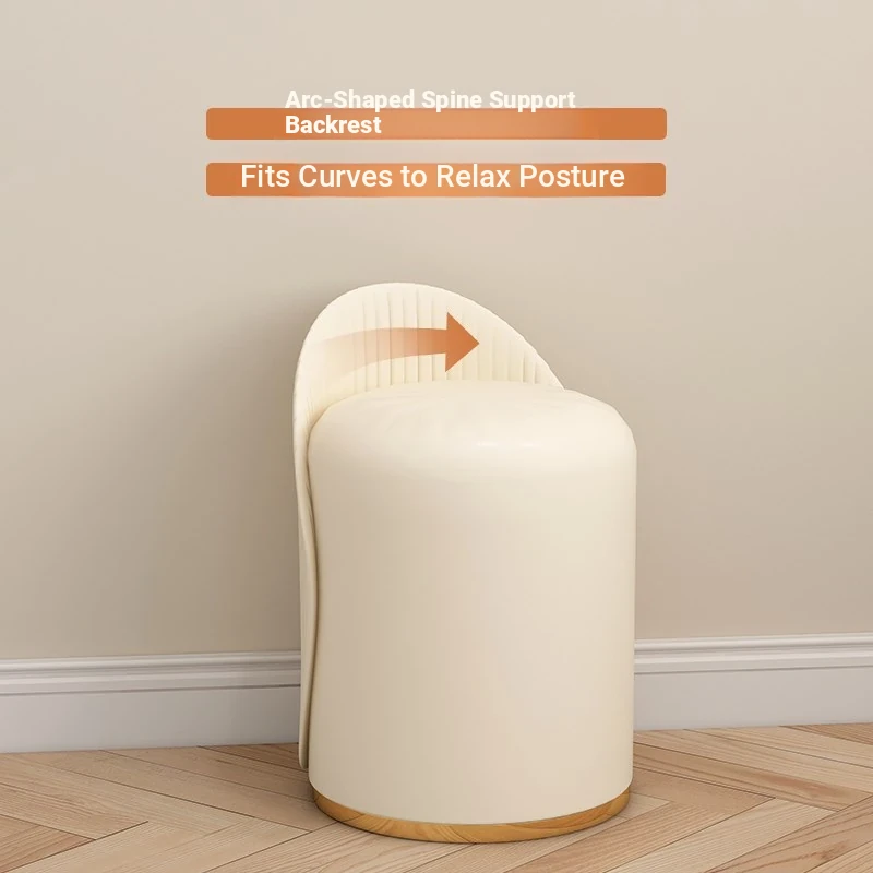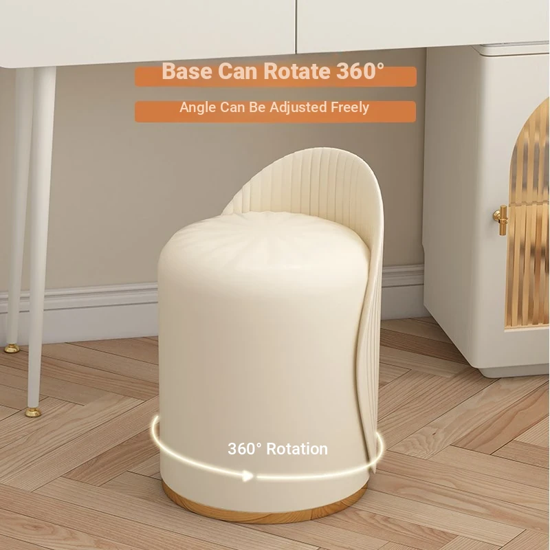 Chic French Vanity Stool - Stylish Rotating Makeup Chair with Backrest, Perfect for Bedroom & Home Use, Trendy Round Leather Design