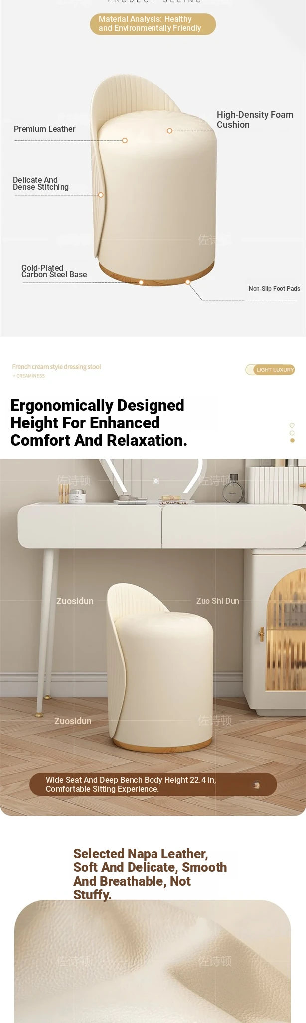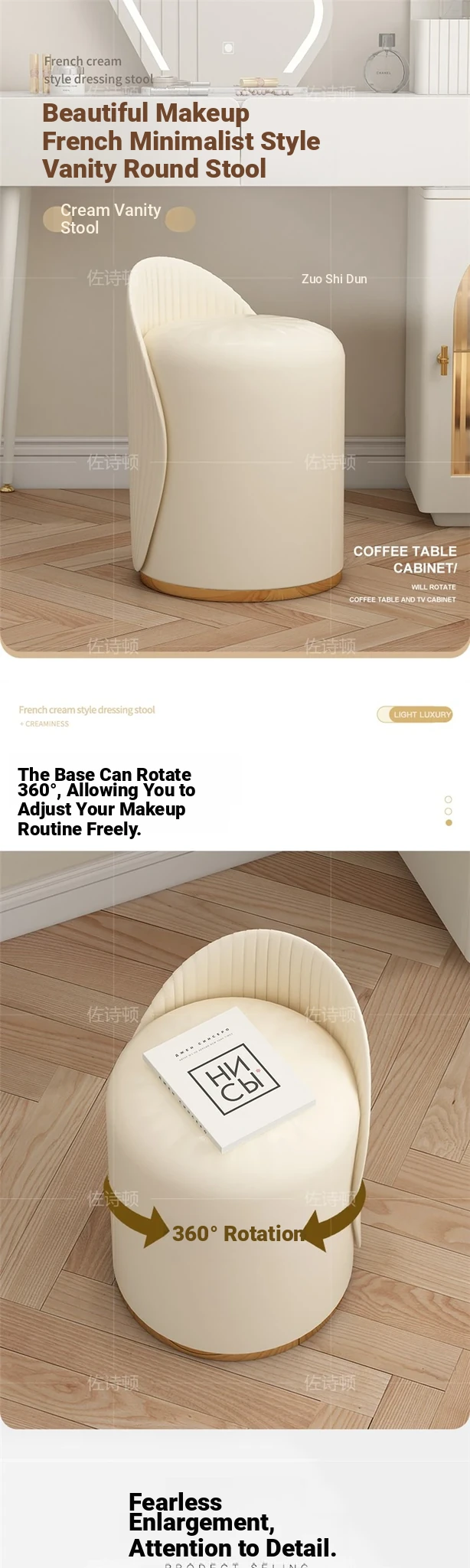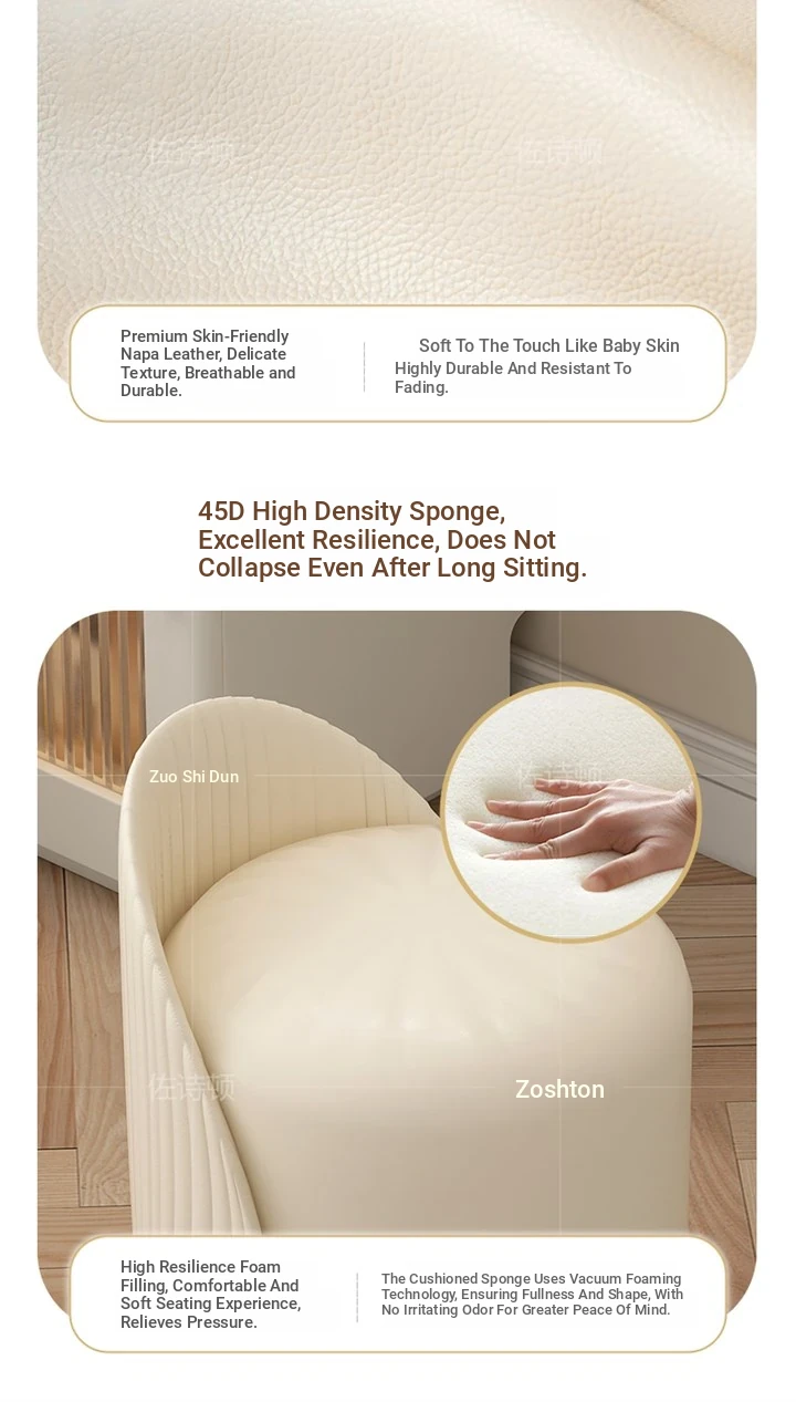 Chic French Vanity Stool - Stylish Rotating Makeup Chair with Backrest, Perfect for Bedroom & Home Use, Trendy Round Leather Design