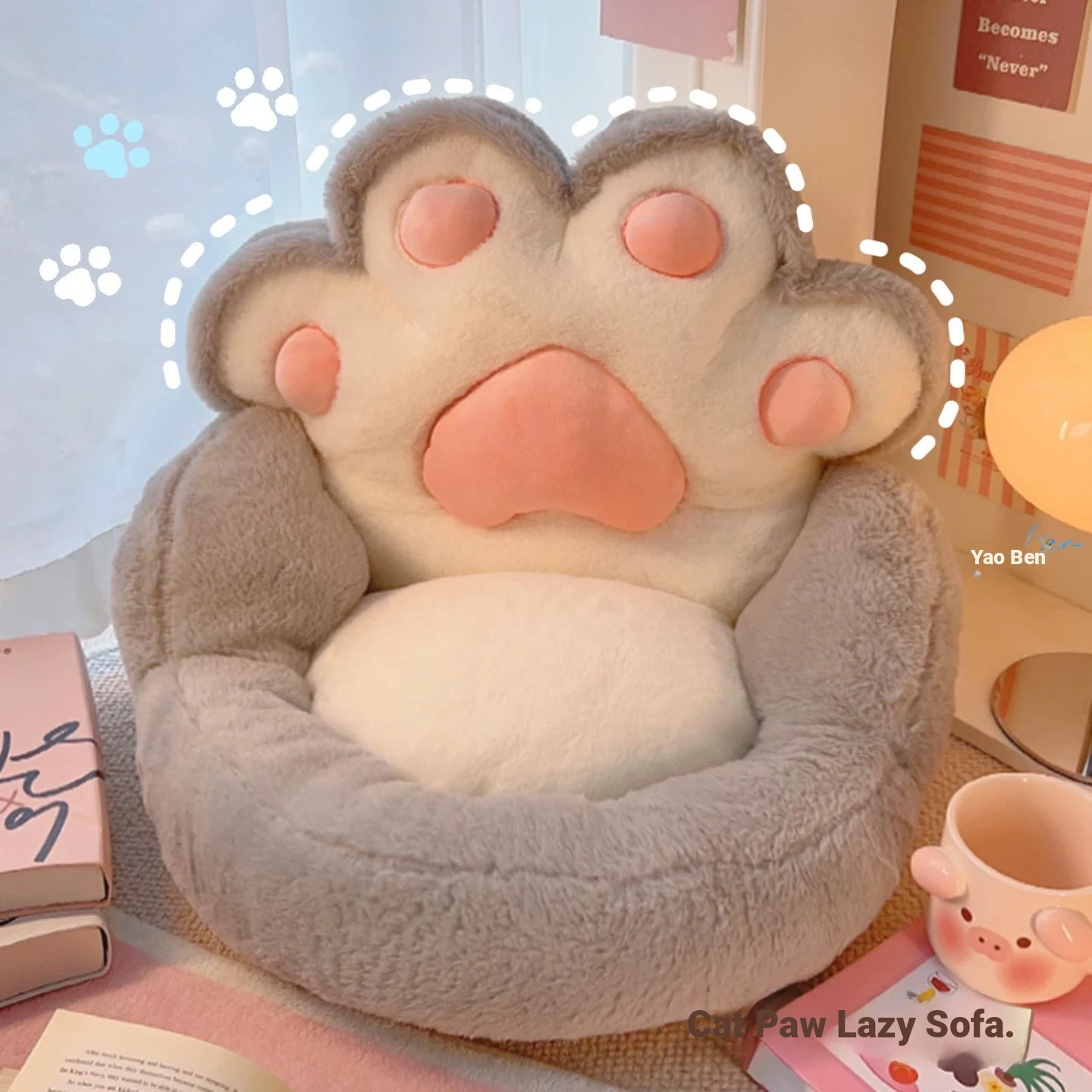Cozy Cat Paw Lazy Sofa - Cute Cartoon Floor Cushion for Bedrooms, Ideal for Single Seating, Perfect as a Pet Bed or Window Nook, Fun and Comfortable for Cats and Humans Alike!