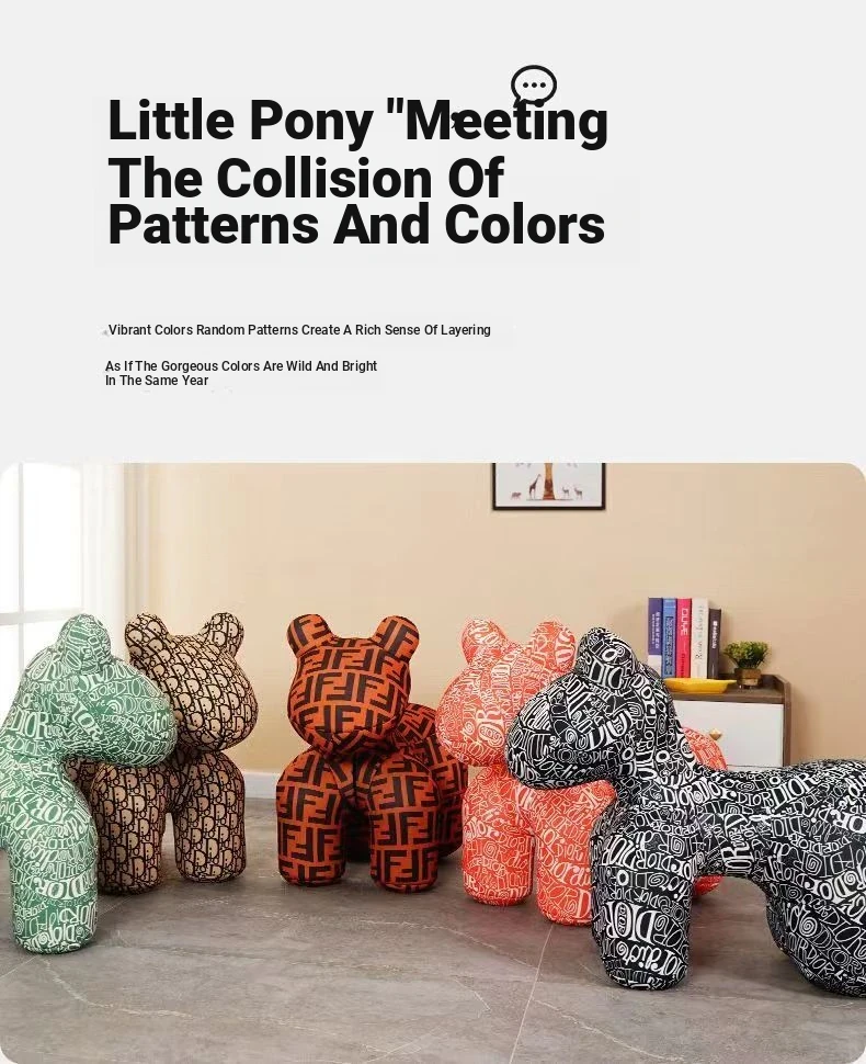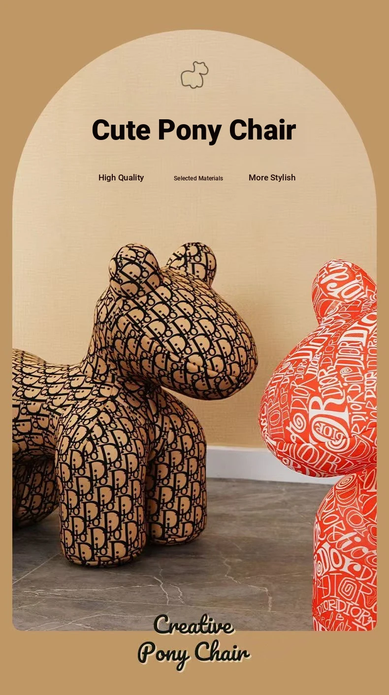 Creative Cartoon Pony Chair for Kids - Fun and Stylish Riding Dog Stool for Parents and Children, Perfect for Living Room Decor!