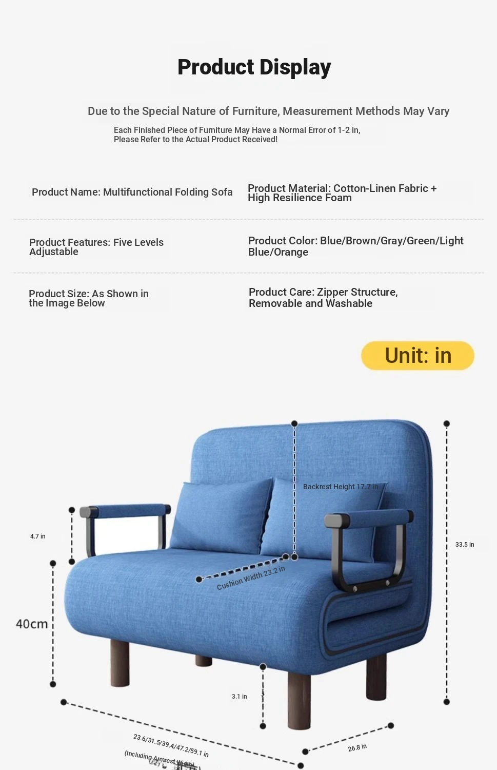 Light blue foldable sofa bed [five adjustable backrest]]