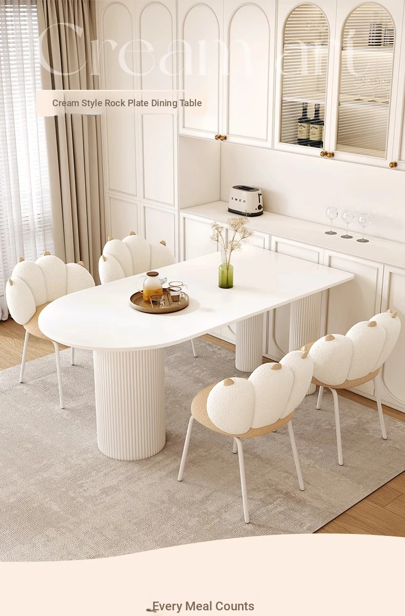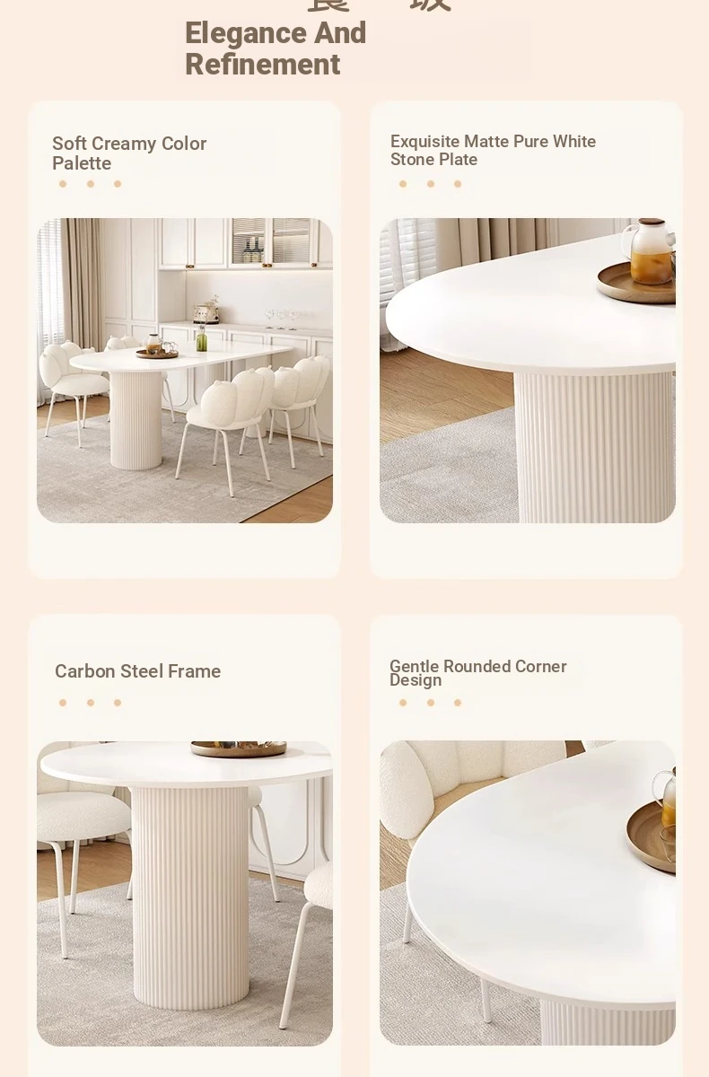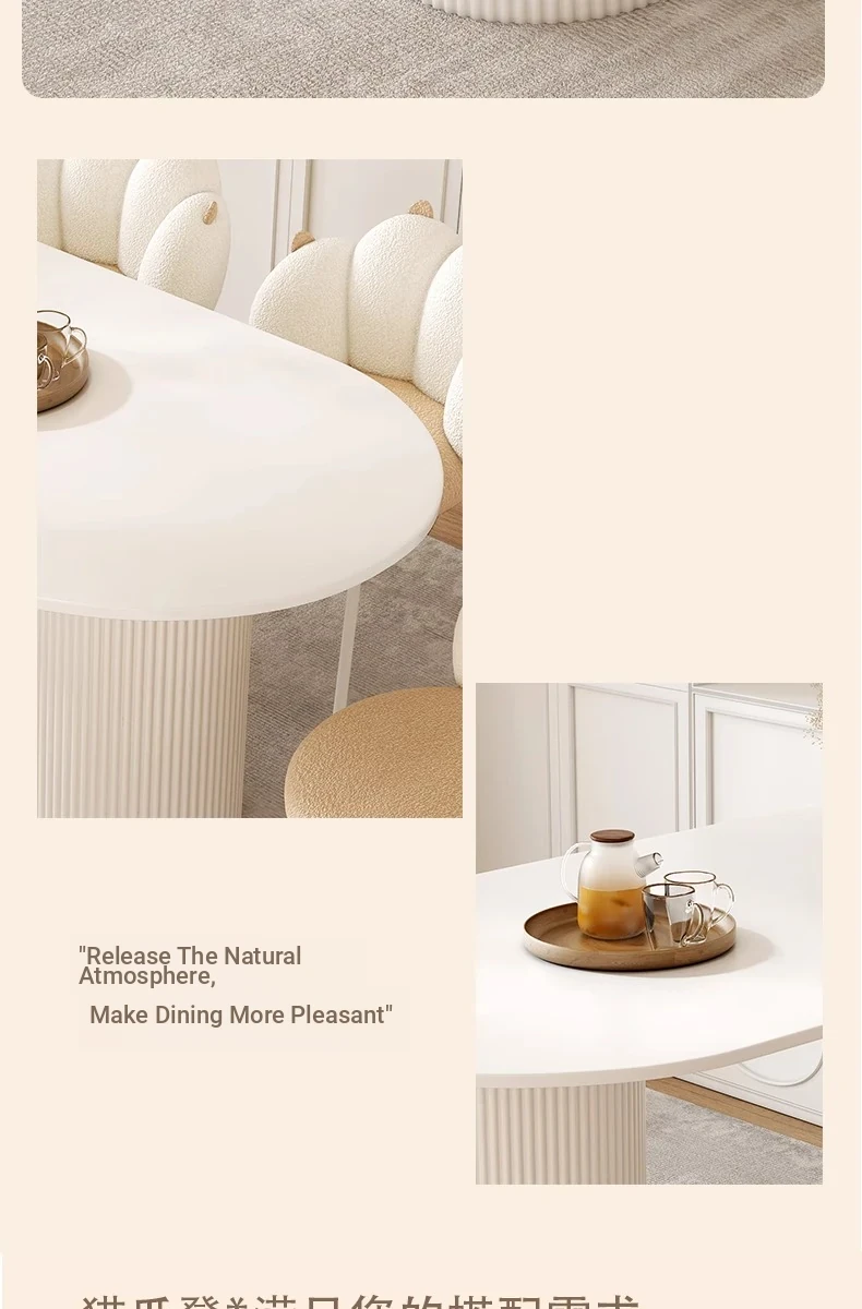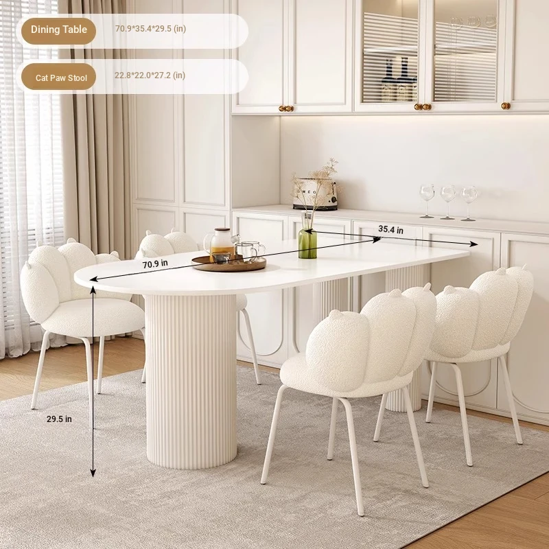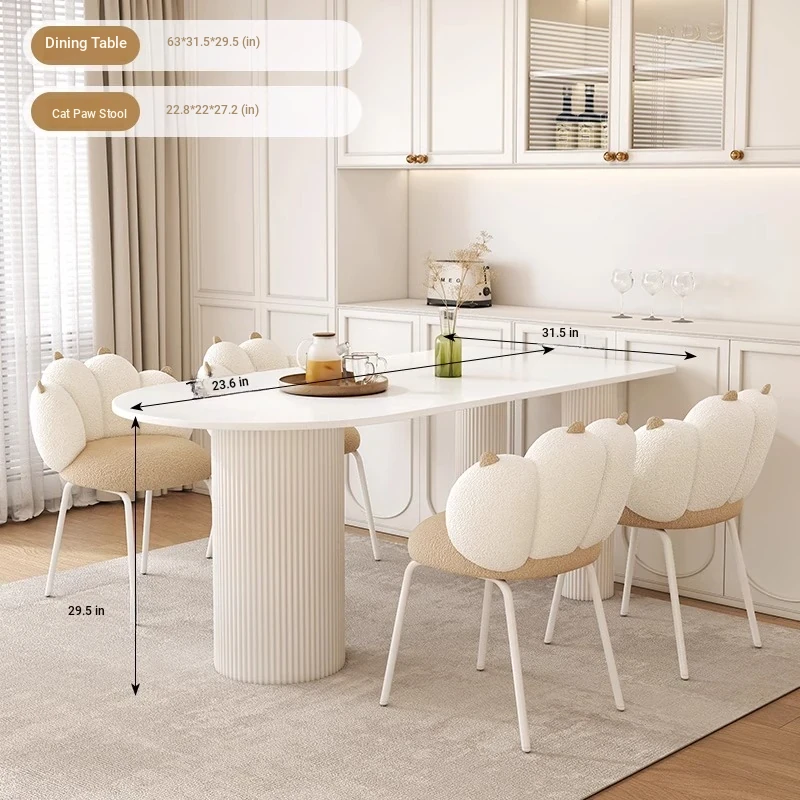 Transparency(Pure White Rock Table 62.99in + creamy-white cat claw chair * 4 [not Rotate] Rice white table legs)