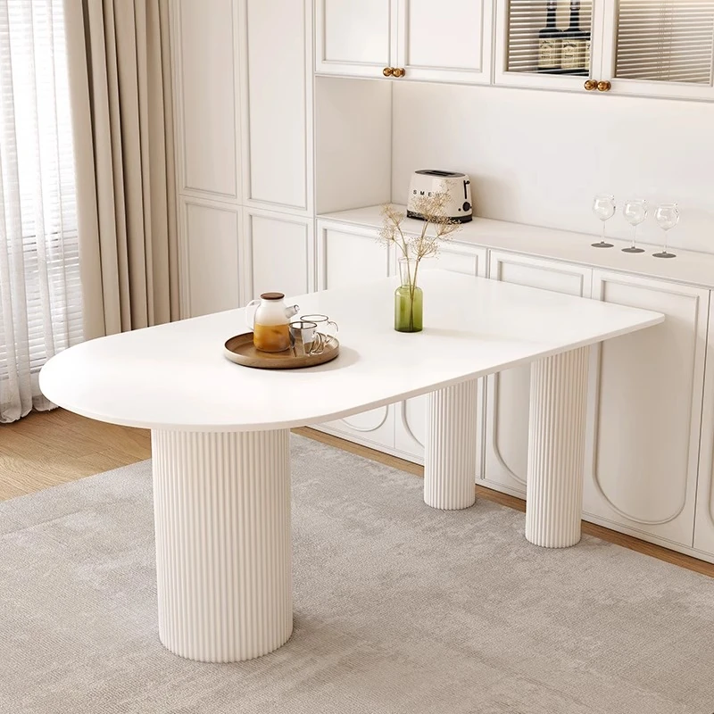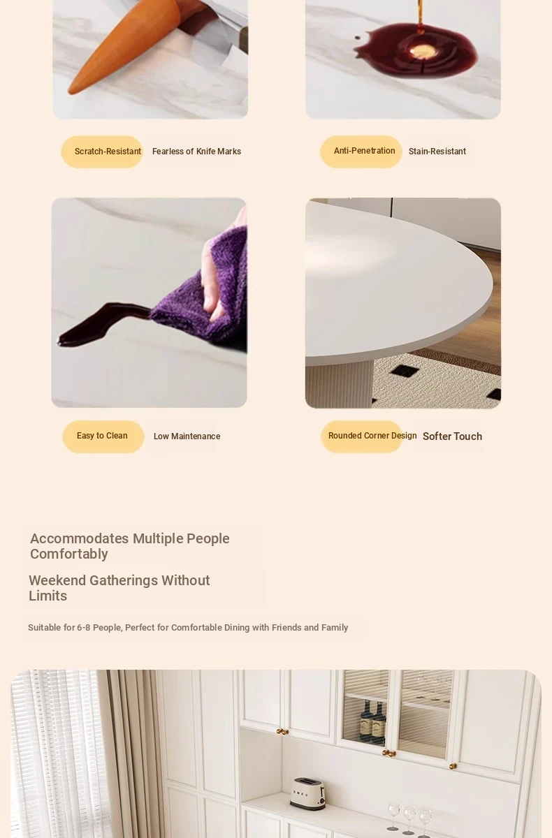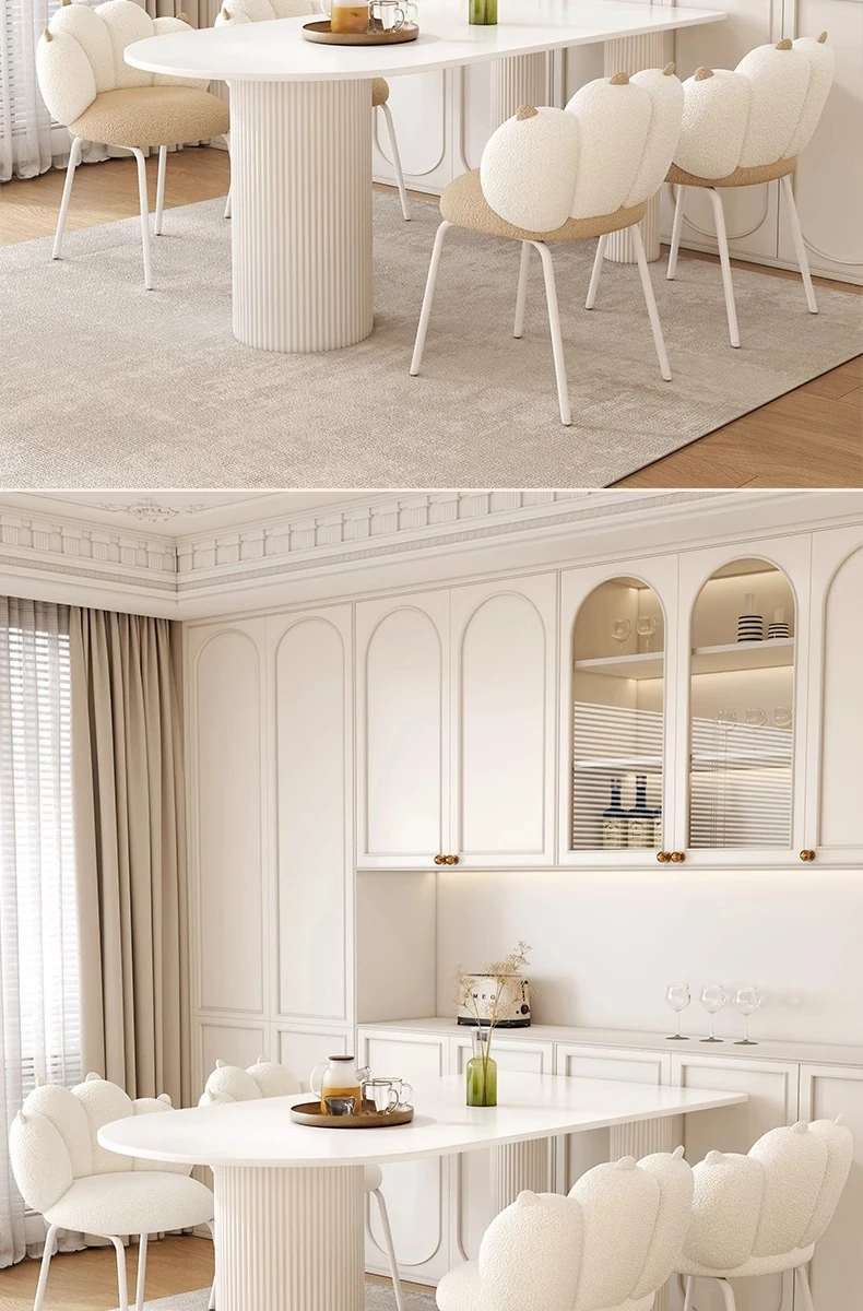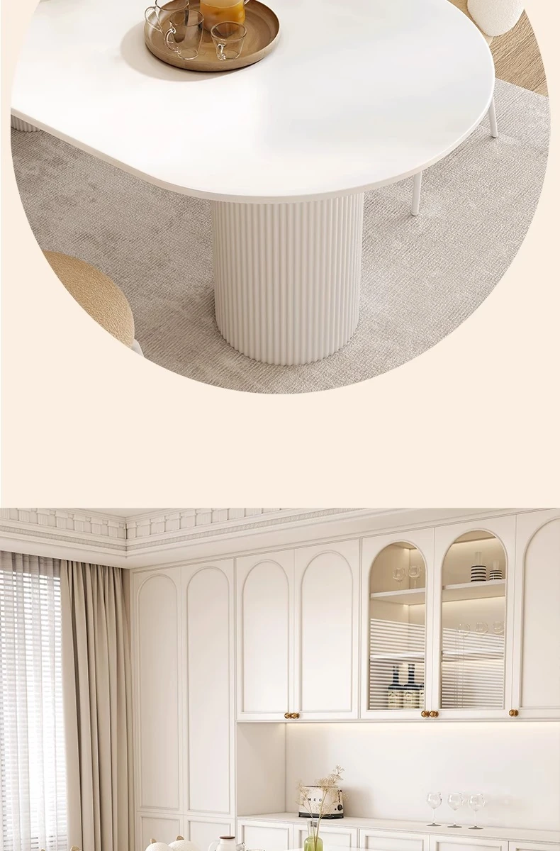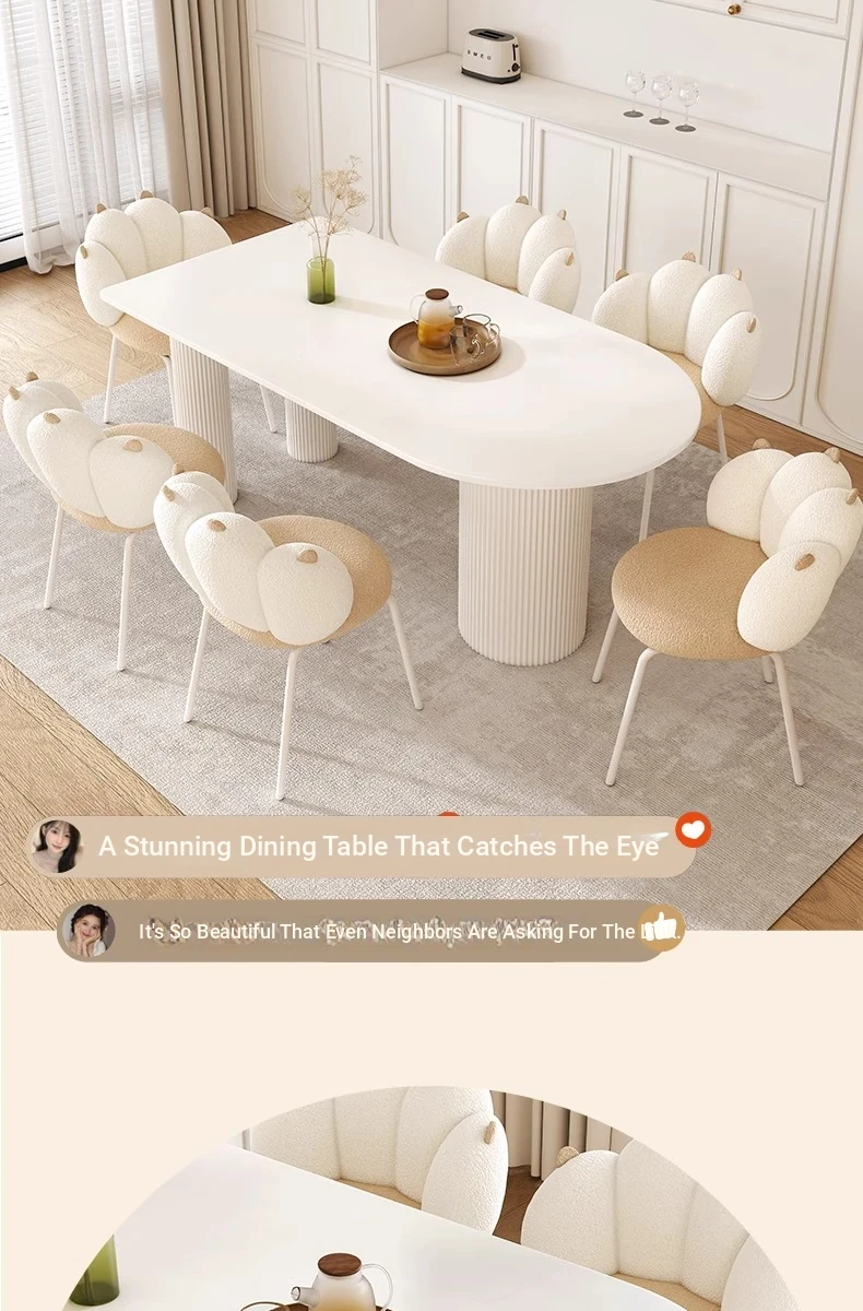 Transparency(Pure White Rock Table 62.99in + creamy-white cat claw chair * 4 [not Rotate] Rice white table legs)