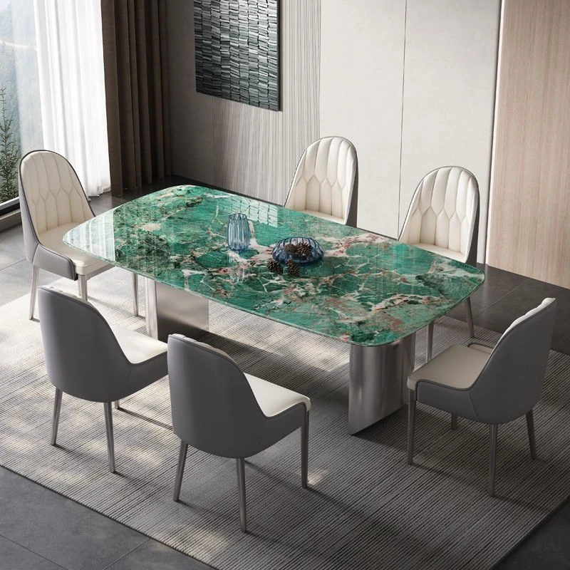 Light green(51.18 in Super crystal stone dining table [51.18in*27.56in] +6 chairs)