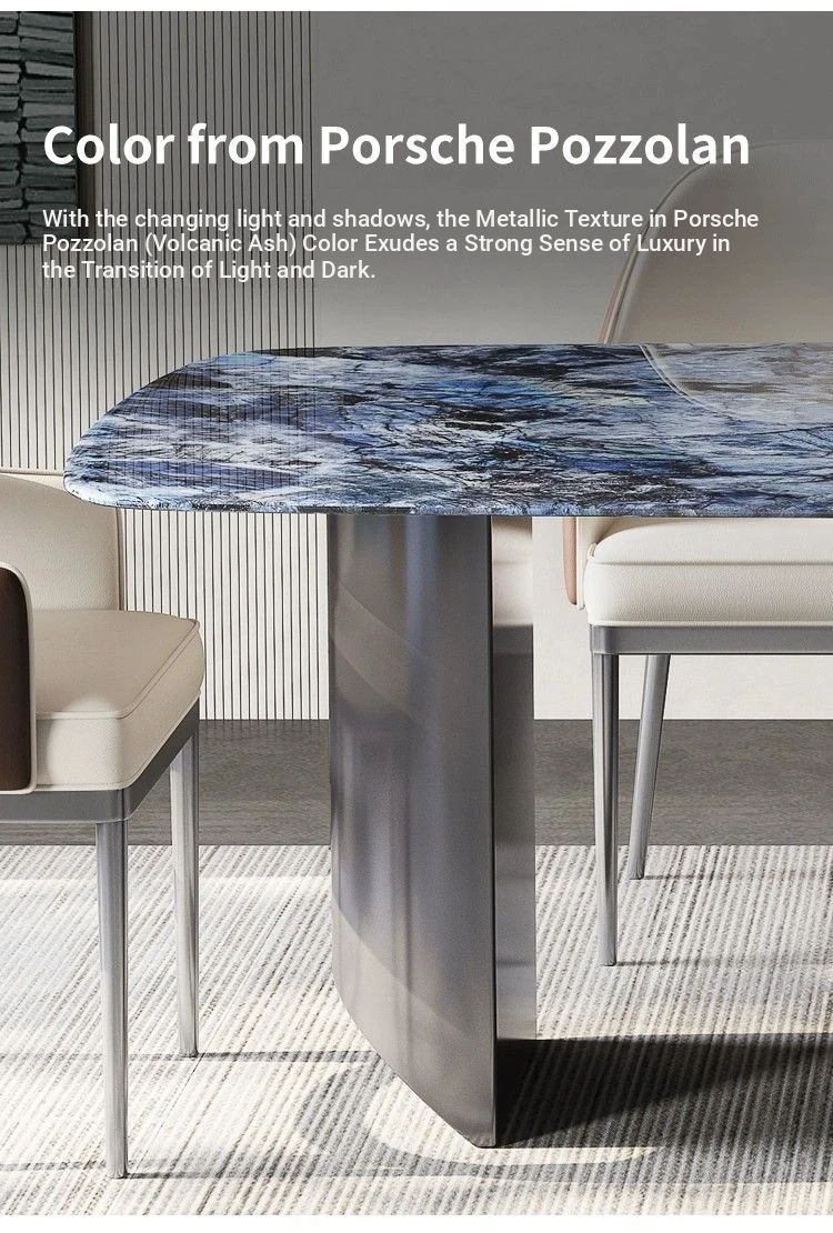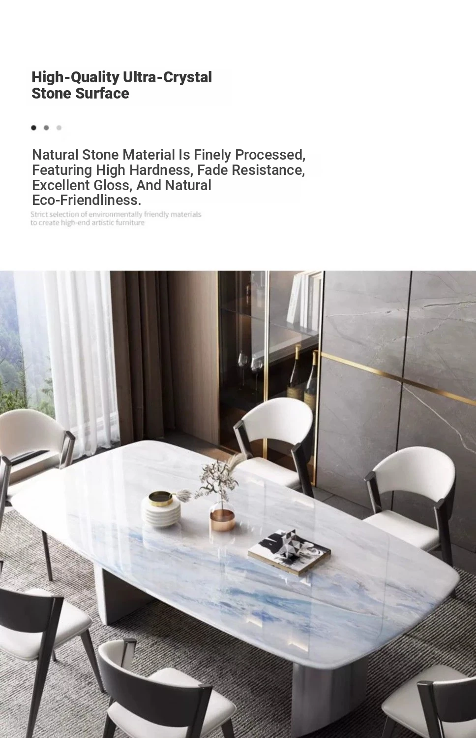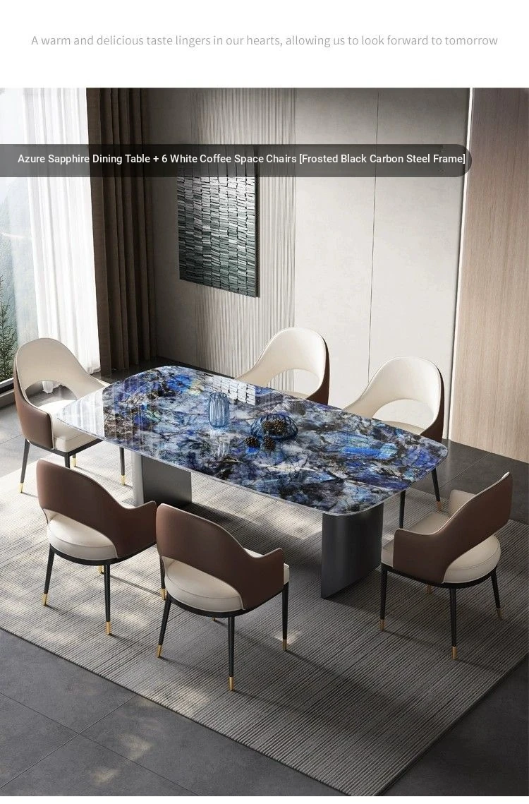 Dark Blue(55.12 in Super crystal stone dining table [55.12in*31.50in] +8 chairs)