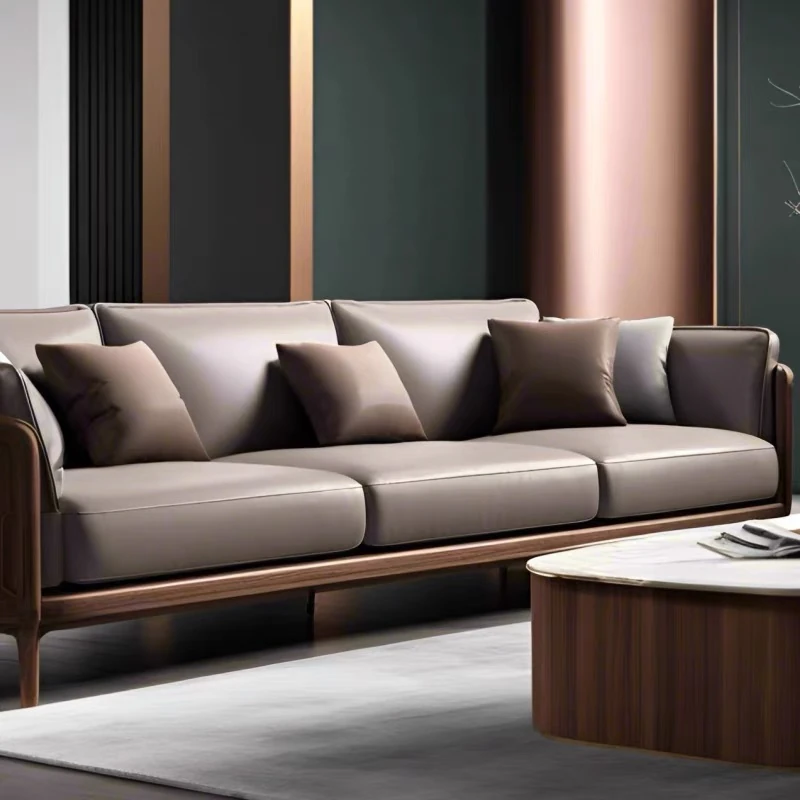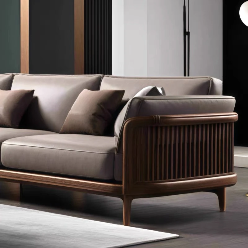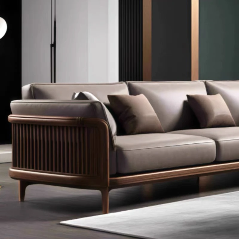 Elegant Minimalist Solid Wood and Genuine Leather Sofa - Modern Chinese-Style High-End Zen Aesthetic Design for a Luxurious Living Space