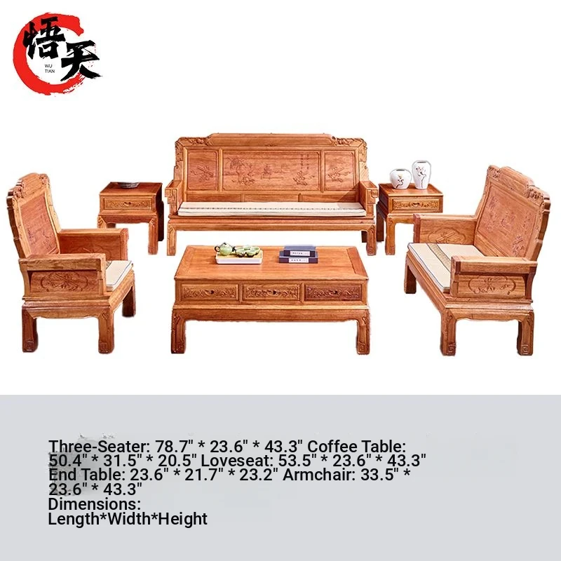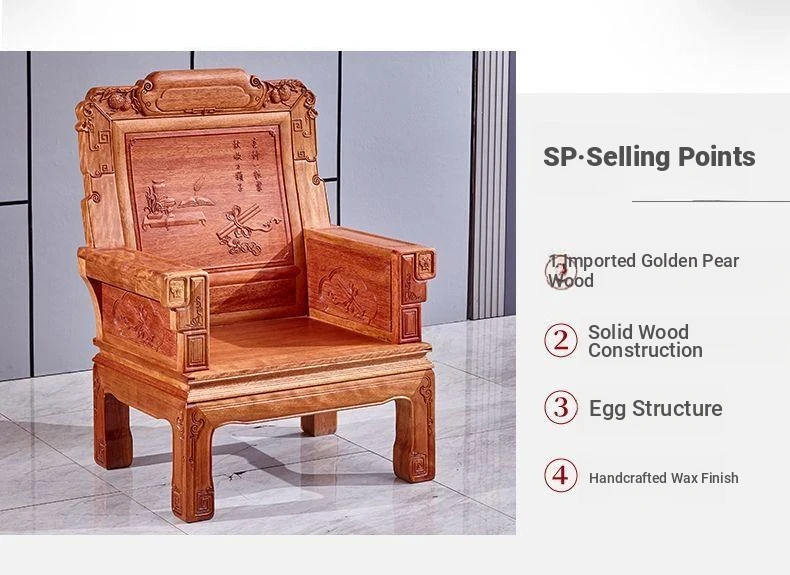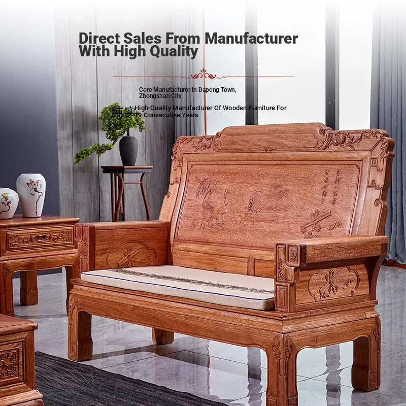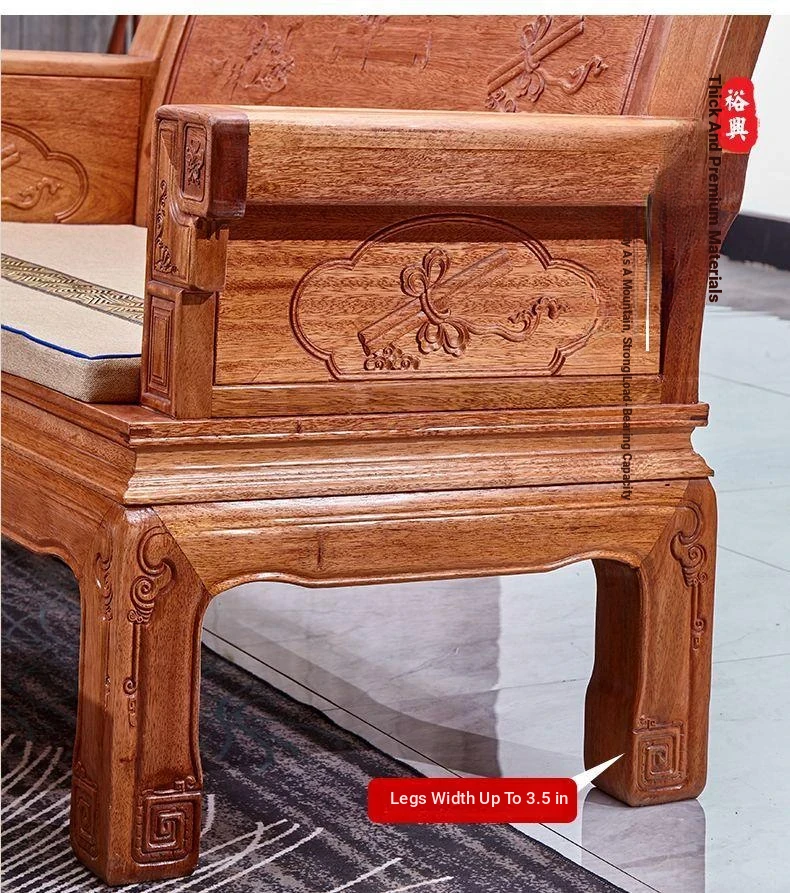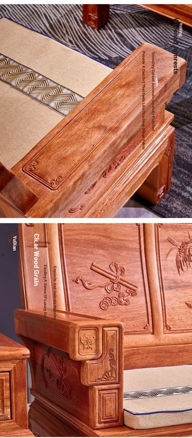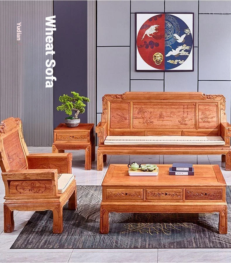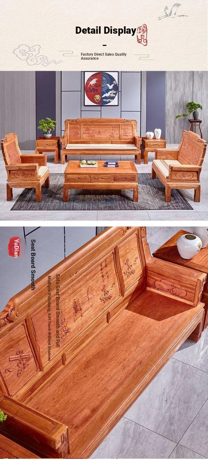 Exquisite Golden Pear Wood Solid Wood Sofa - Antique Chinese Ming and Qing Style, Perfect for Small Spaces, High-End Living Room Furniture Set