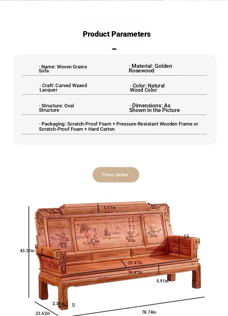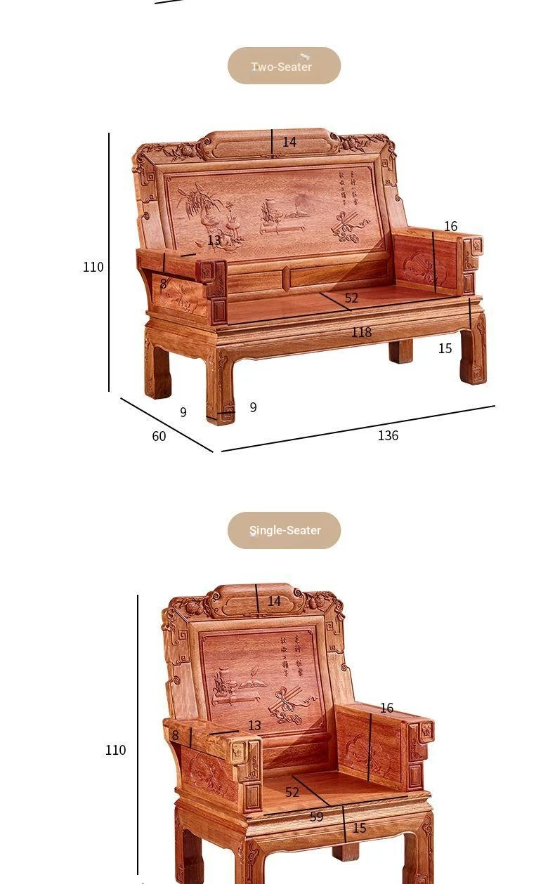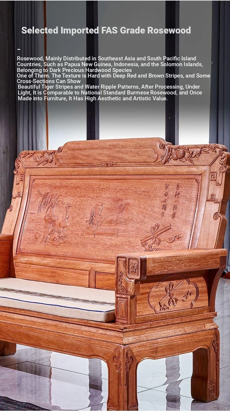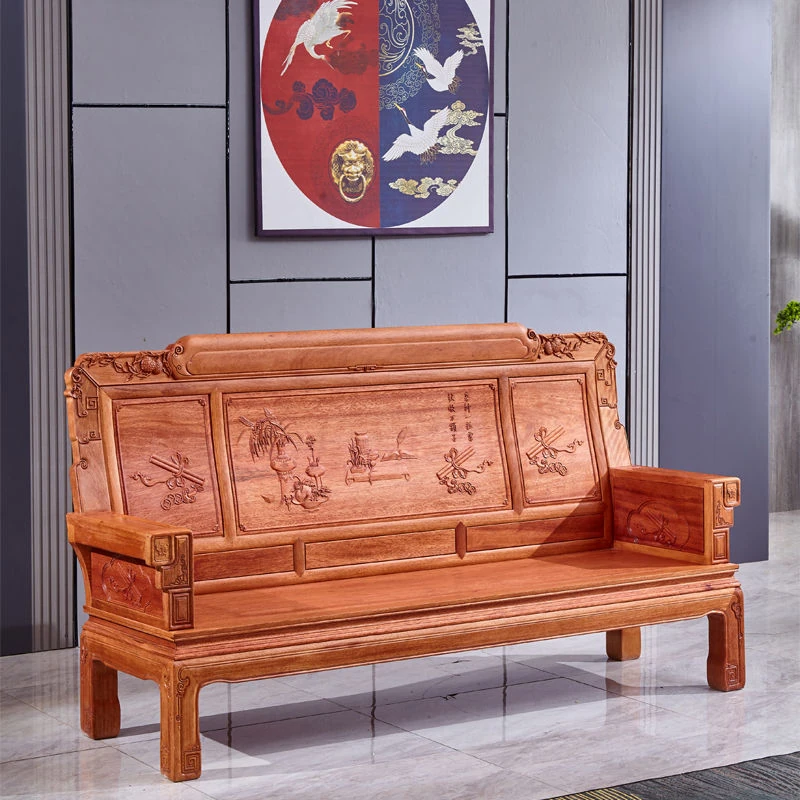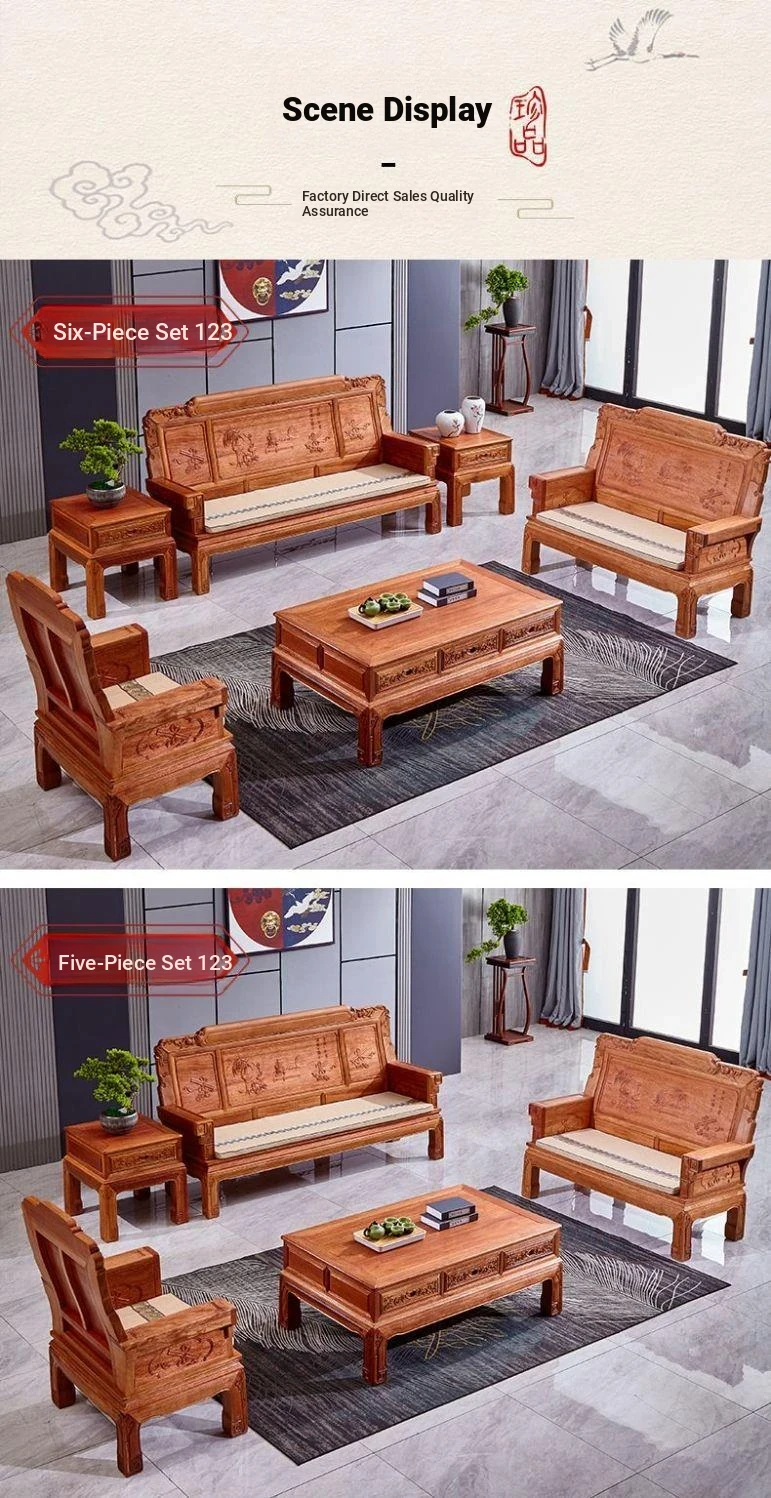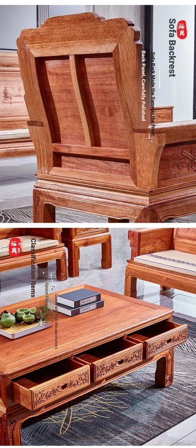 Exquisite Golden Pear Wood Solid Wood Sofa - Antique Chinese Ming and Qing Style, Perfect for Small Spaces, High-End Living Room Furniture Set